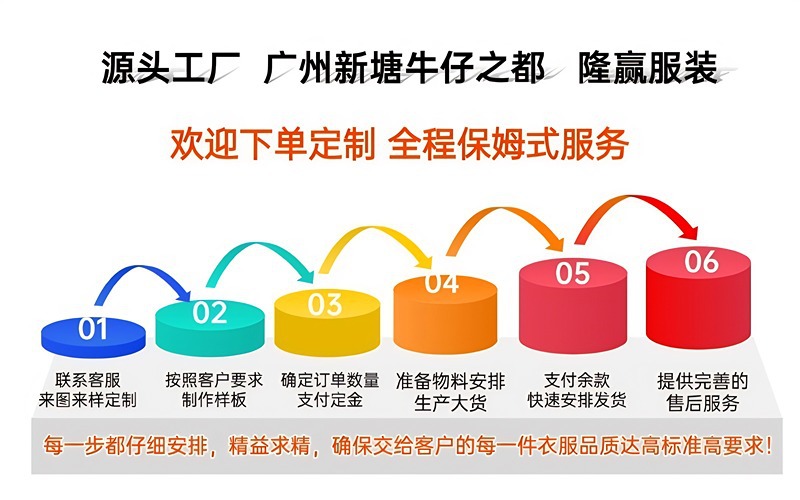 工厂位于广州新塘牛仔之都,专注生产欧美外贸牛仔服装10多年!