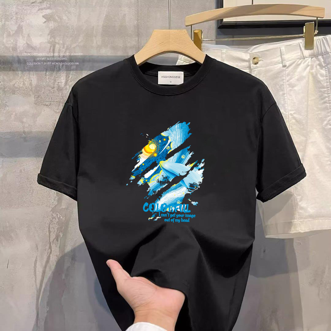 핫 트렌디 브랜드 여름 모든면 반팔 티셔츠 남성용 루즈 탑 패셔너블 프린트 반소매 탑베이스 셔츠스토어 가기
