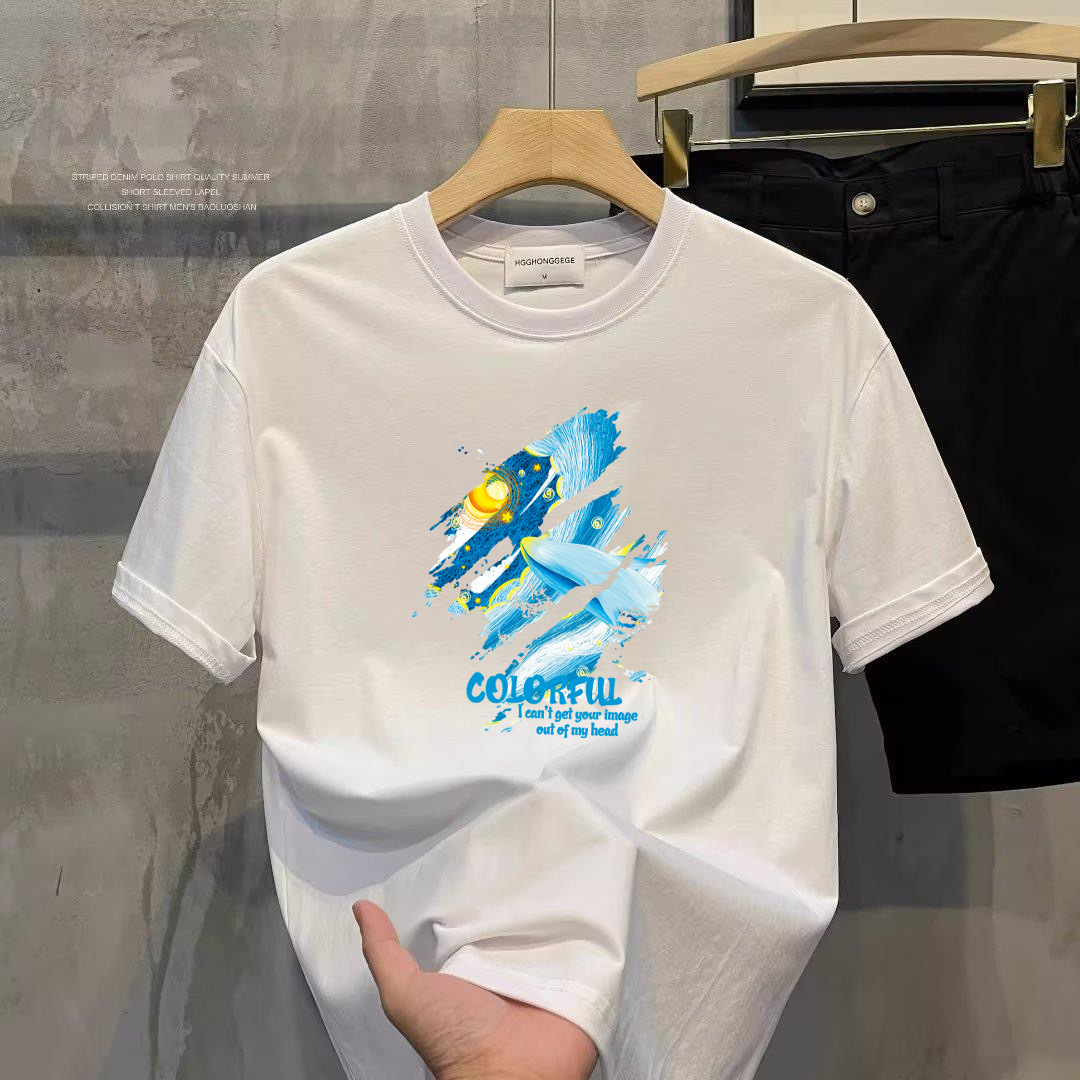 핫 트렌디 브랜드 여름 모든면 반팔 티셔츠 남성용 루즈 탑 패셔너블 프린트 반소매 탑베이스 셔츠