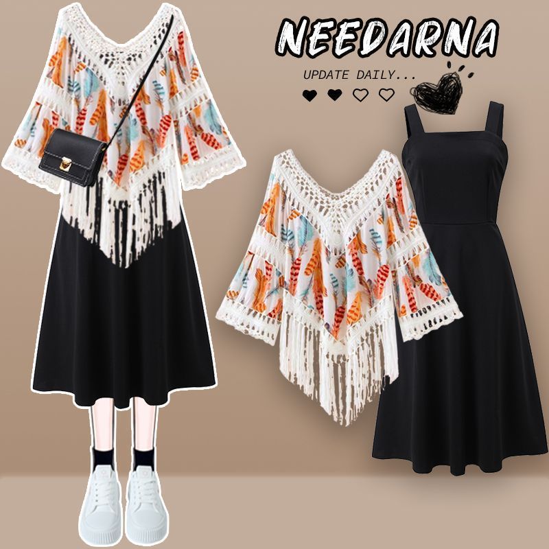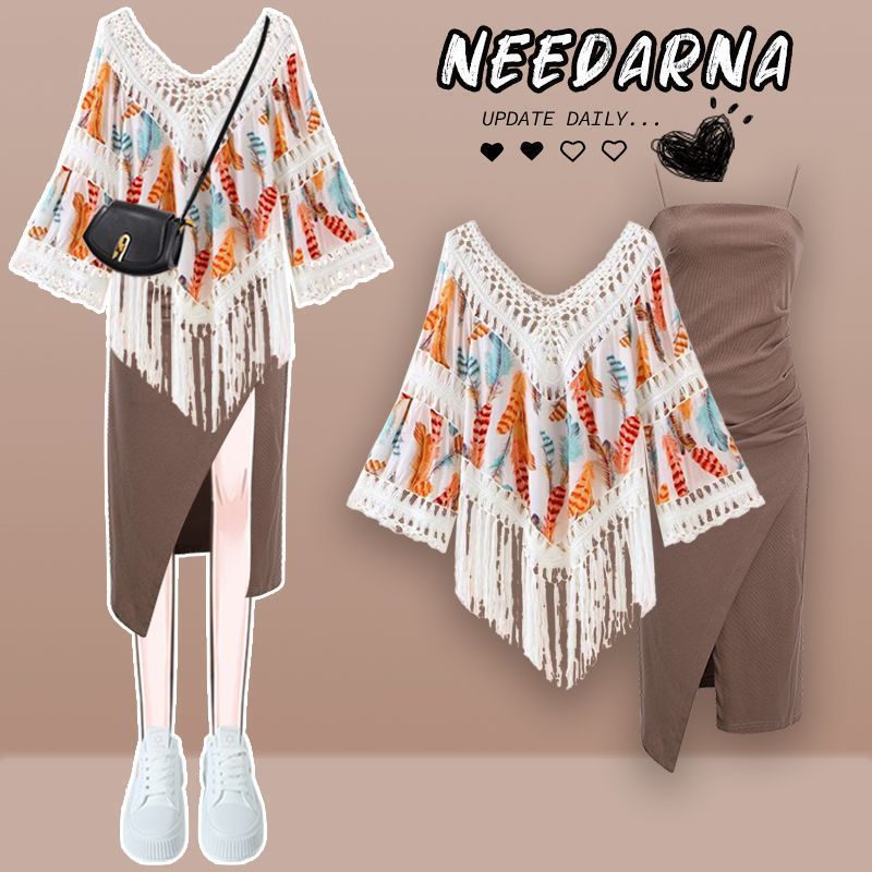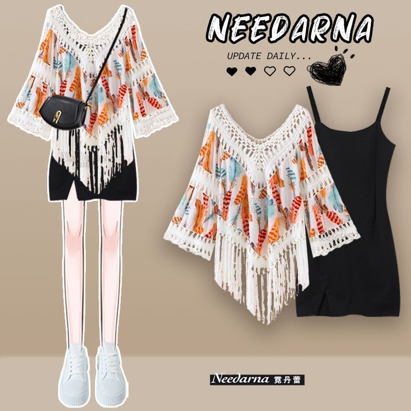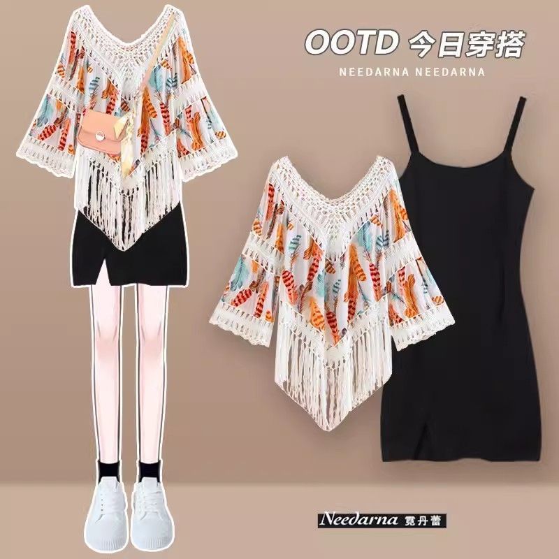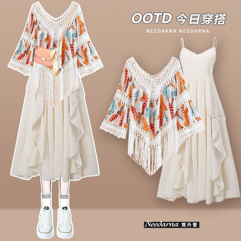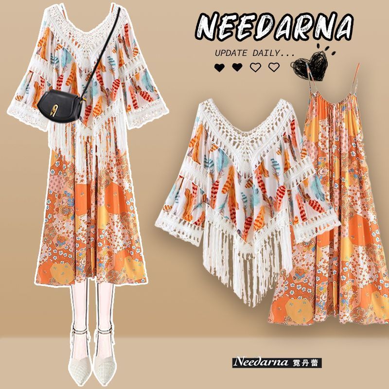 국경 간 여름 세트 여성의 2024 새로운 도파민 착용 민족 스타일 블라우스 슬링 원피스 여자 2스토어 가기