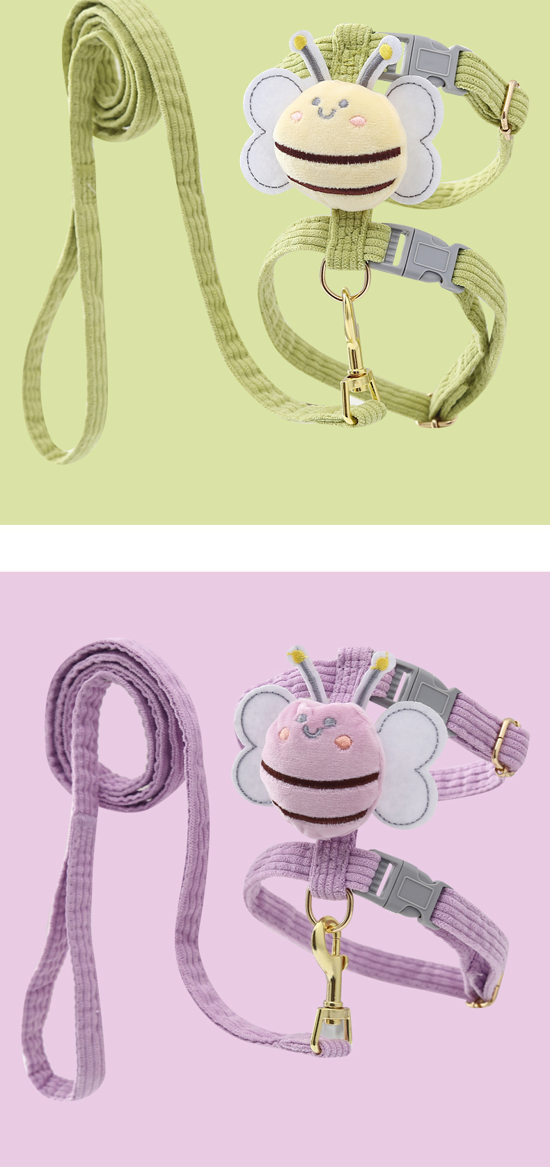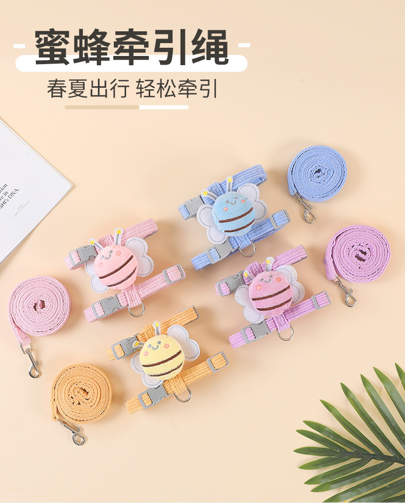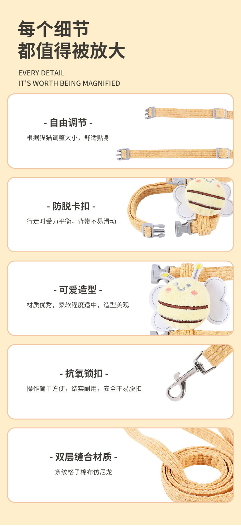 작은 벌 모양 고양이 목줄, I자형 탈출 방지 외출용 고양이 목줄, 인기 조절 가능한 가슴끈 고양이 목줄