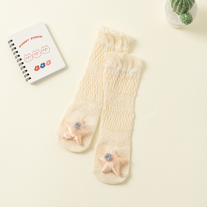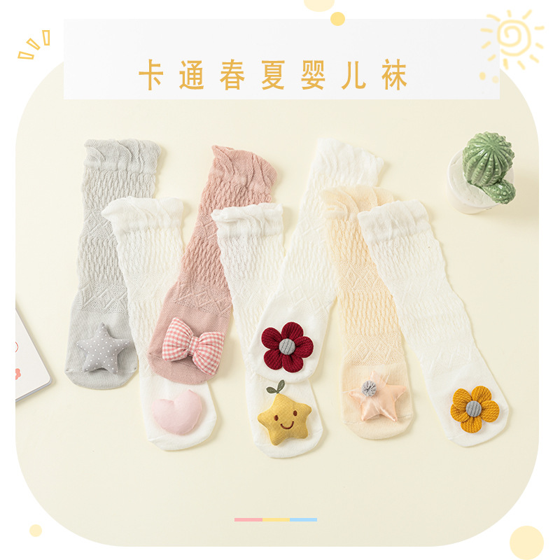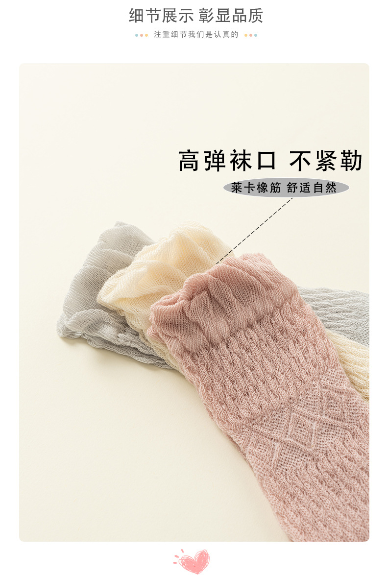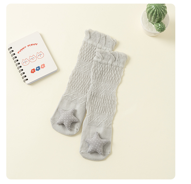 아기 봄과 여름 얇은 메쉬 통기성 남성과 여성의 아기 긴 튜브 무릎 높은 피부 친화적 인 모기 양말 도매를위한 국경스토어 가기