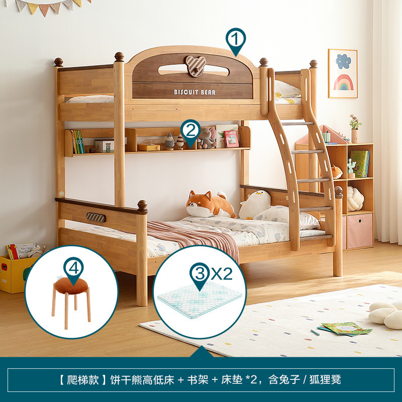 • [사다리 스타일] 비스킷베어 이층침대 + 책장 + 매트리스*2