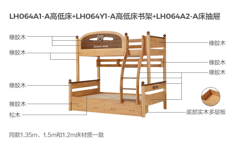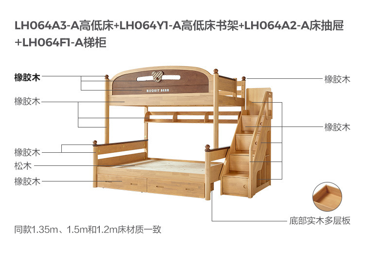 • [사다리 스타일] 비스킷베어 이층침대 + 책장 + 서랍장