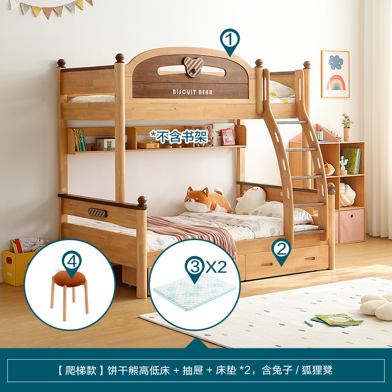 • [사다리 스타일] 비스킷베어 이층침대 + 책장 + 서랍 + 매트리스*2