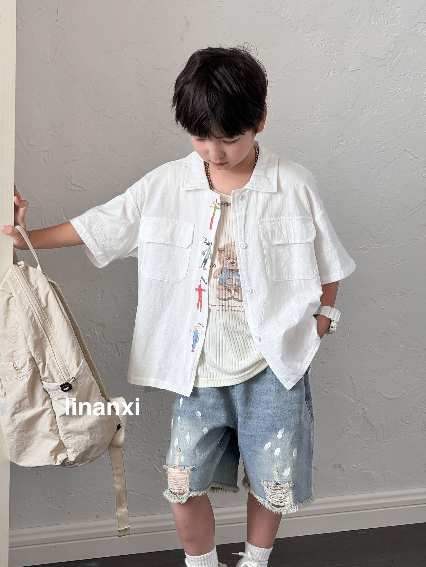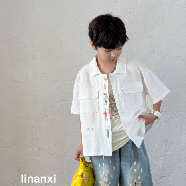 85365 리 낸시 25 년 여름 새 반팔 셔츠 한국 스타일 모든면 유행 하이 퀄리티 어린이 캐주얼 셔츠
