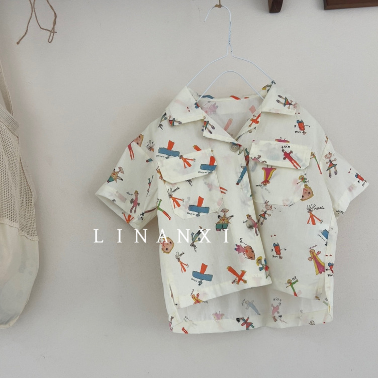 85365 리 낸시 25 년 여름 새 반팔 셔츠 한국 스타일 모든면 유행 하이 퀄리티 어린이 캐주얼 셔츠스토어 가기