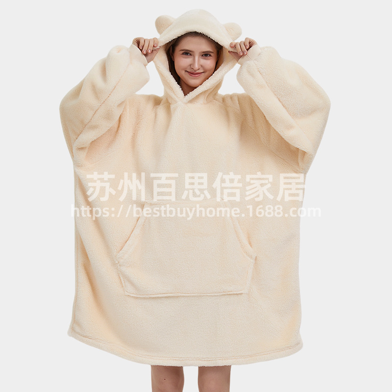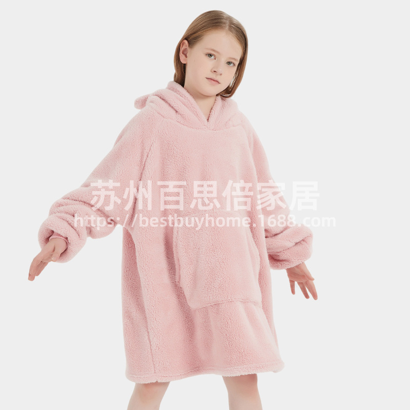 부모-자식 베어 나이트가운 2025 국경 간 핫셀러 두꺼운 양고기 벨벳 푹신한 게으른 후디 아웃웨어