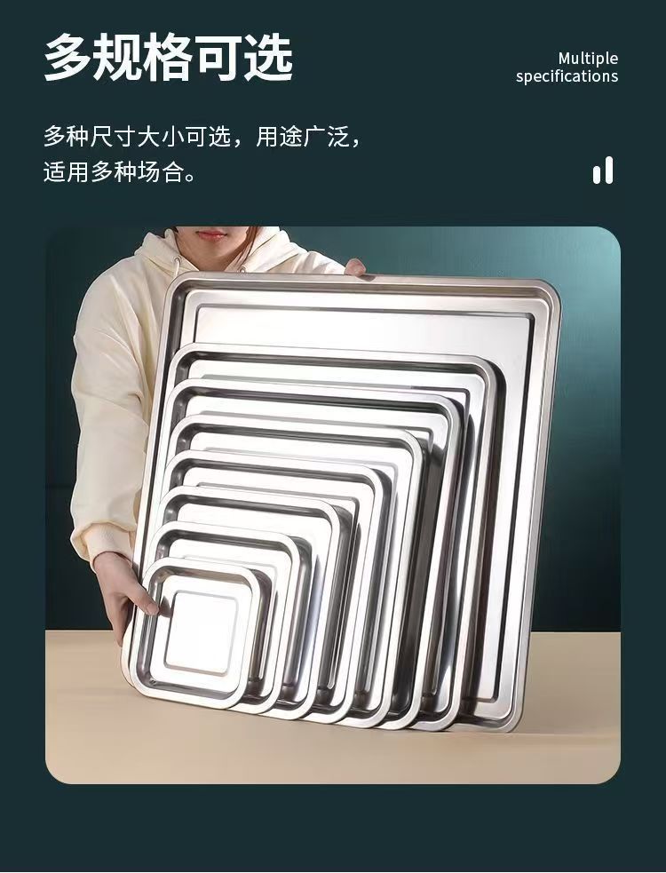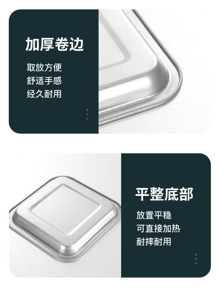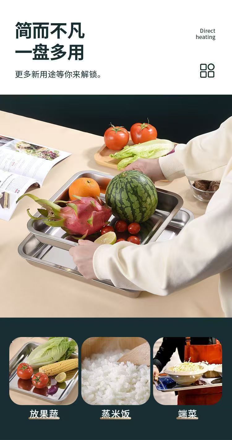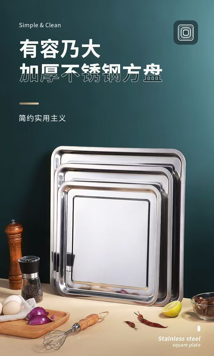 Kai Zun 스테인레스 스틸 사각형 접시 쌀 접시 주방 요리 접시 찜 밥 접시 바베큐 접시 트레이 저녁 식사 접시 과일 접시