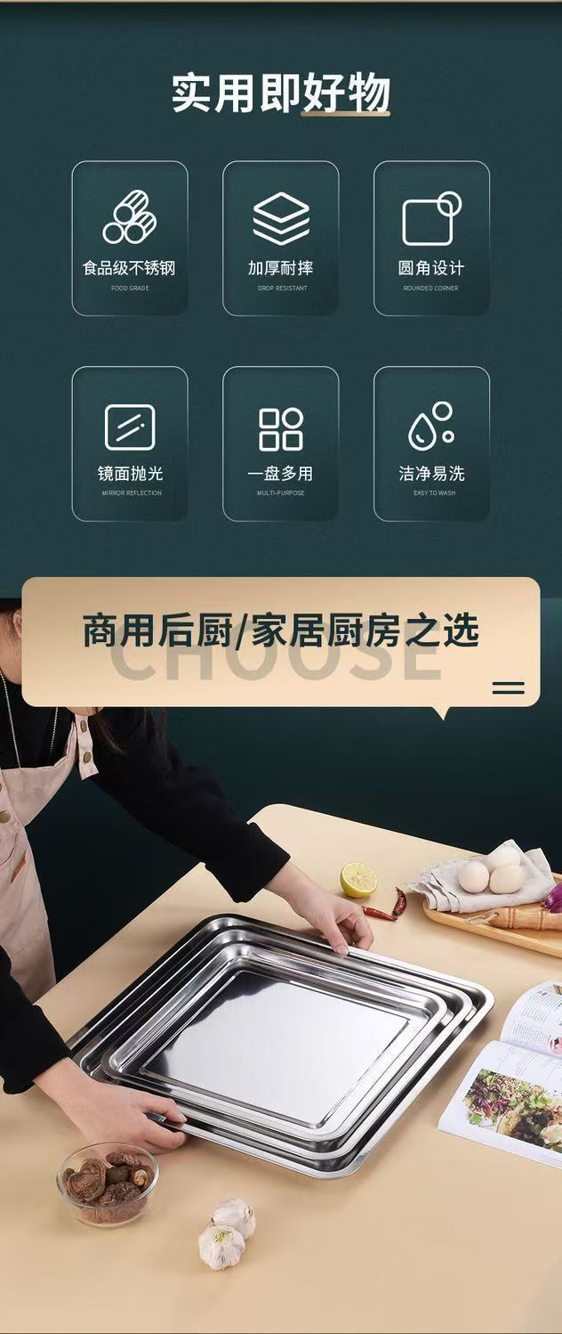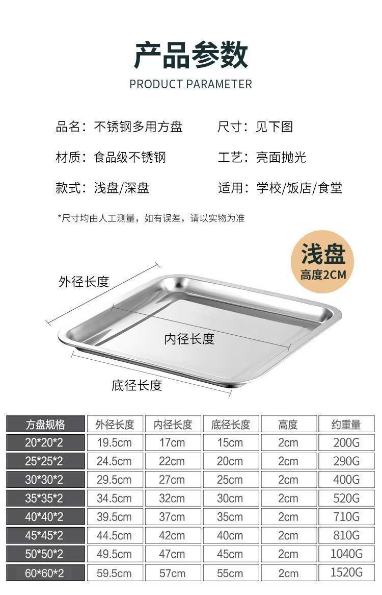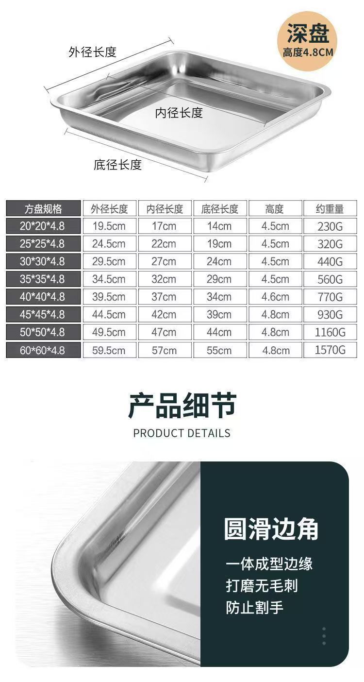 Kai Zun 스테인레스 스틸 사각형 접시 쌀 접시 주방 요리 접시 찜 밥 접시 바베큐 접시 트레이 저녁 식사 접시 과일 접시