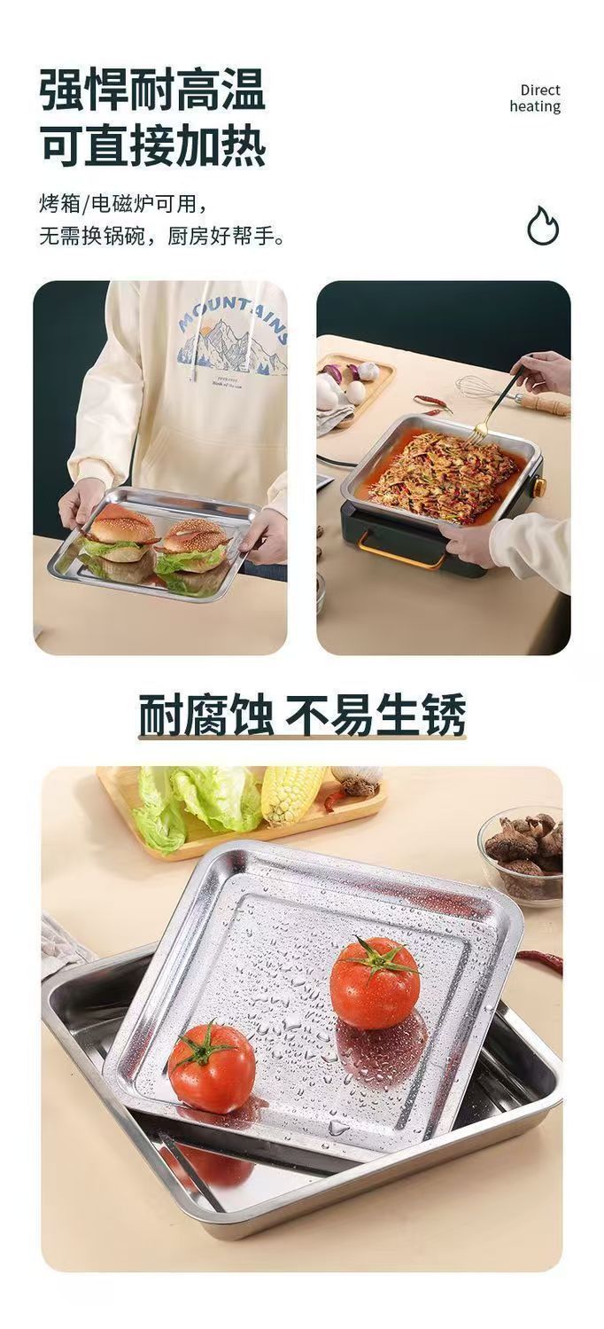 Kai Zun 스테인레스 스틸 사각형 접시 쌀 접시 주방 요리 접시 찜 밥 접시 바베큐 접시 트레이 저녁 식사 접시 과일 접시스토어 가기
