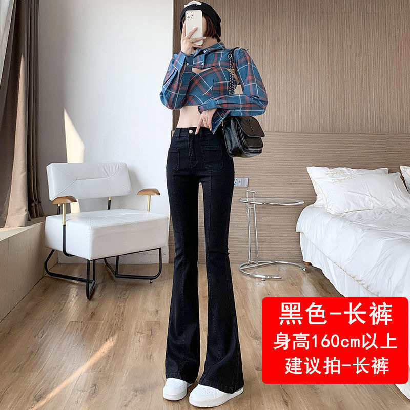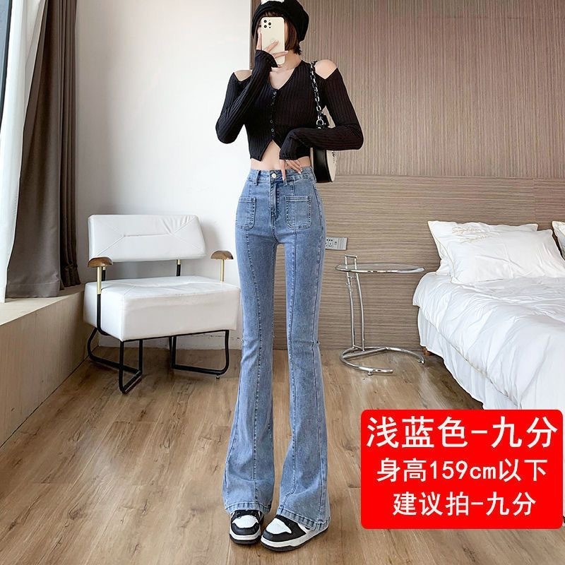 2025년 봄 가을 여성용 마이크로 플레어 청바지 새로운 한국식 하이웨이스트 슬림핏 다용도 바닥 길이 마이크로 플레어 팬츠스토어 가기