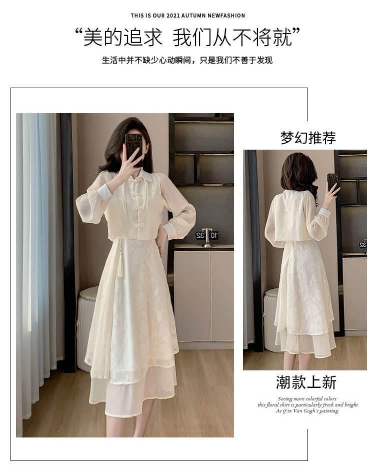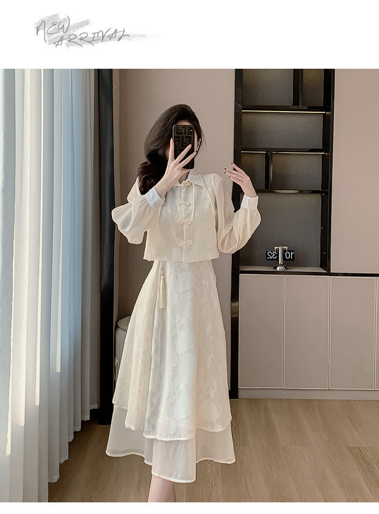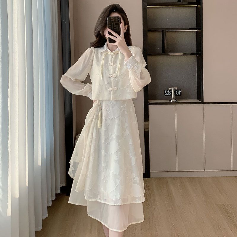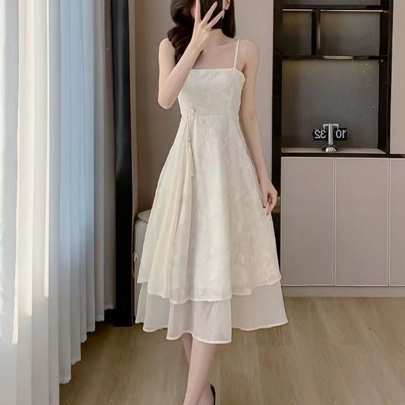 국경 간 새로운 중국 스타일 투피스 여성의 2024 봄 서스펜더 스커트 개선 cheongsam 중국 의류 중국 요소 원피스