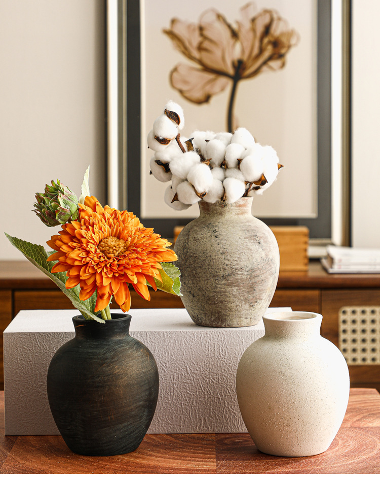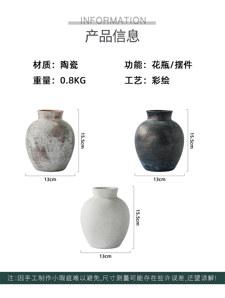 거친 도자기 꽃병 레트로 홈스테이 꽃 삽화 예술 작은 구경 장식 클레이 꽃병의 국경 간 뜨거운 판매