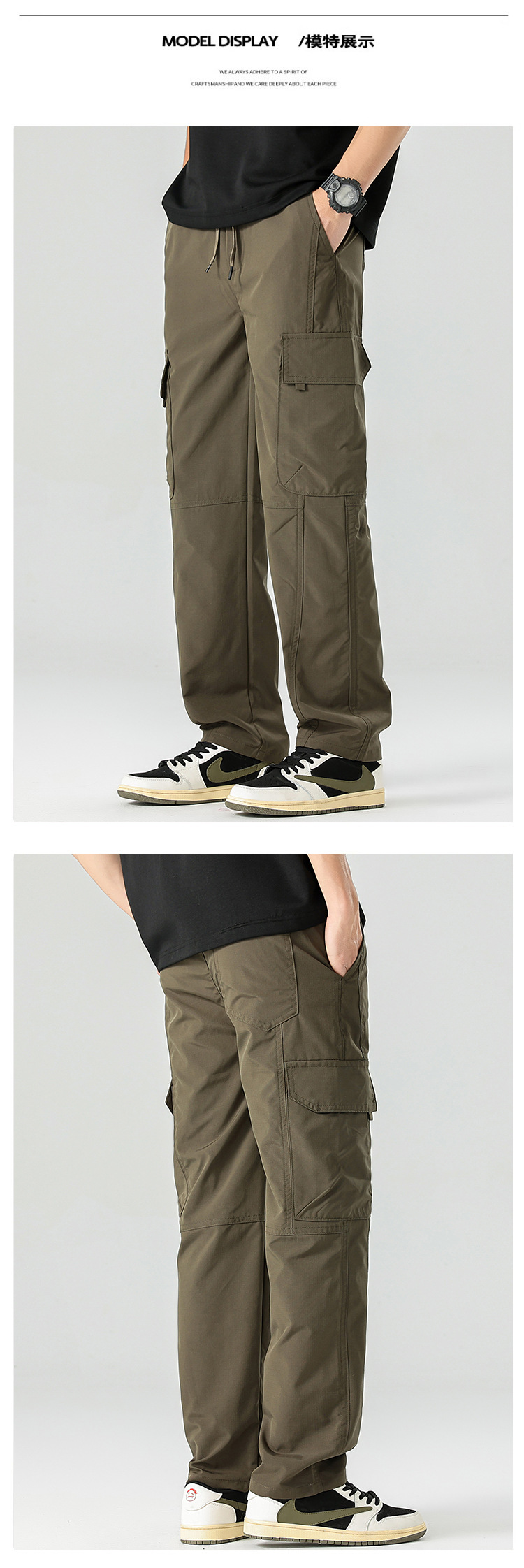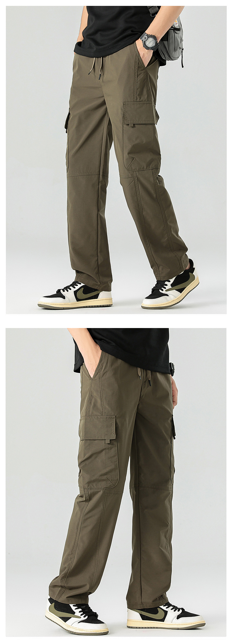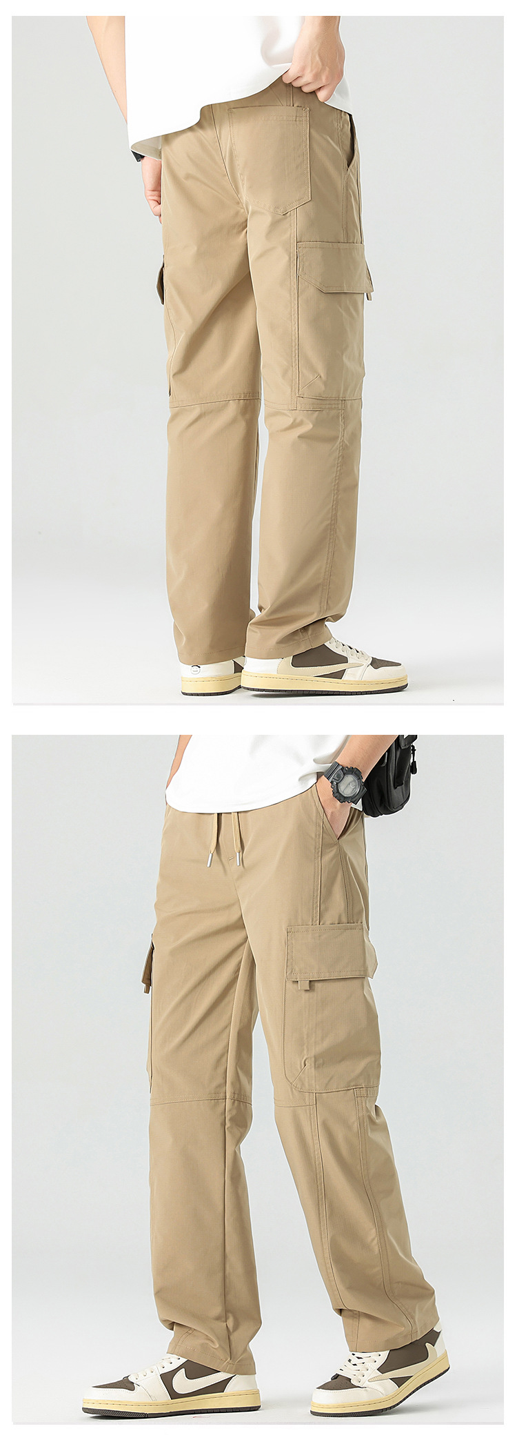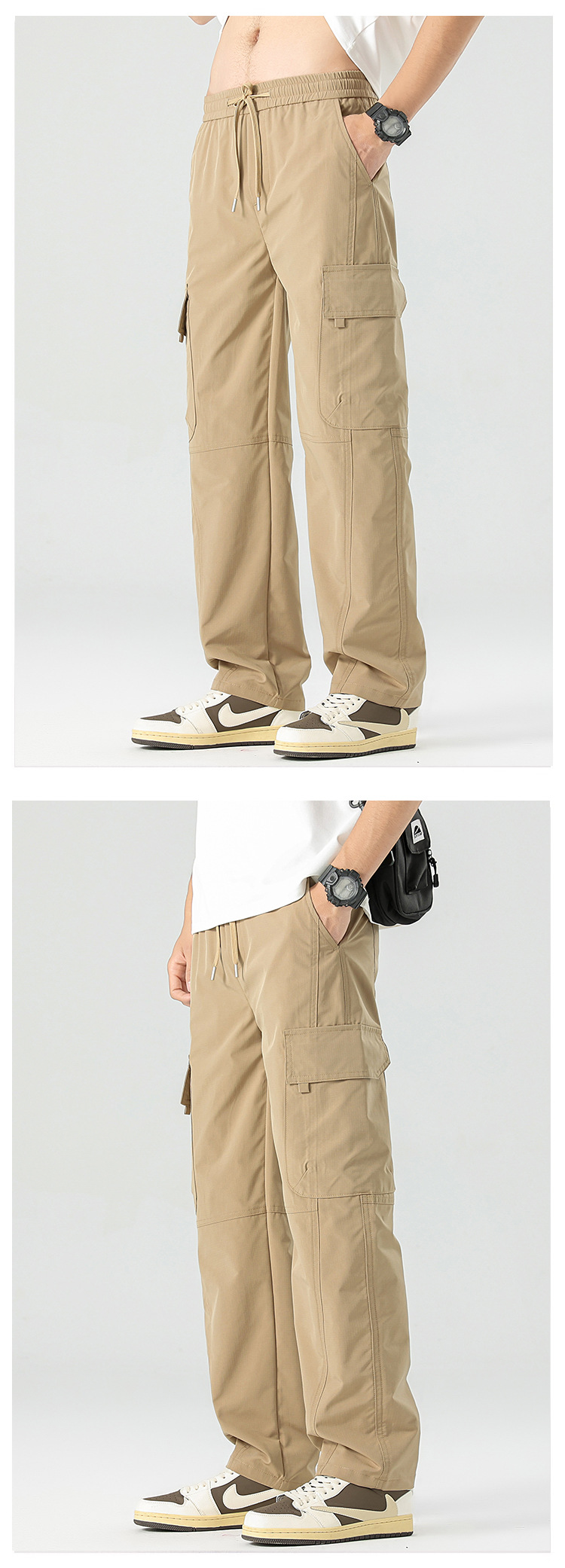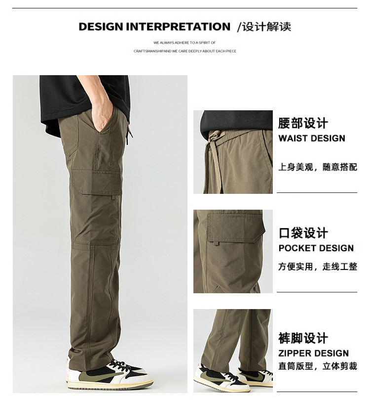 아메리칸 스타일 작업 바지 남자 여름 얇은 2025 새로운 스타일 스트레이트 튜브 느슨한 넓은 다리 아이스 실크 캐주얼 바지 소년스토어 가기