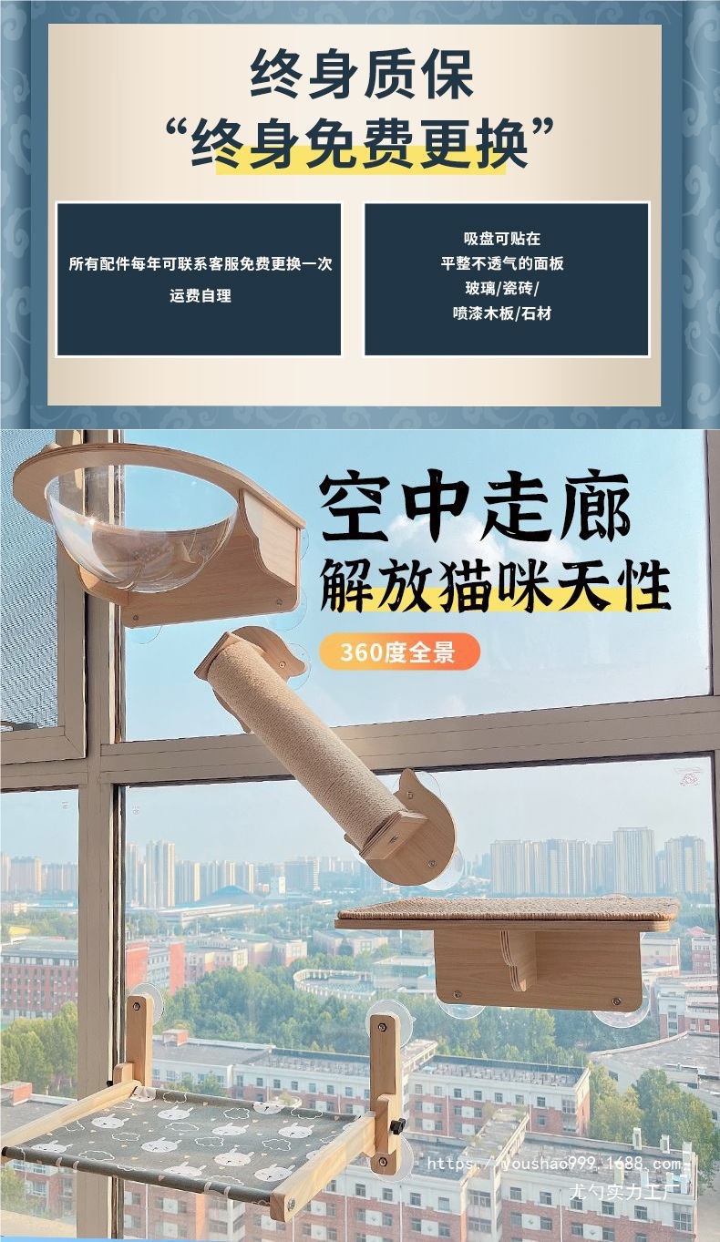 창 유리 창 베이 창 고양이 해먹 펀치없는 벽형 매달려 단단한 나무 고양이 등반 랙 흡입 컵 고양이 랙스토어 가기