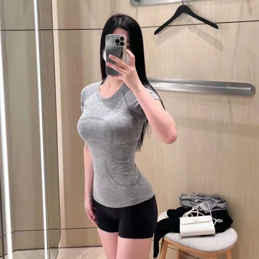 LULU 오리지널 스탠다드 티셔츠 요가웨어 테크 반팔 1.0 통기성 크루 넥 여성용 슬림 핏 스포츠 탑 러닝 트레이닝스토어 가기