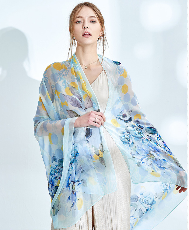 새로운 실크 쉬폰 대형 목도리 여름 얇은 태양 보호 100% 뽕나무 실크 긴 수건 여행 비치 타월 엄마 선물