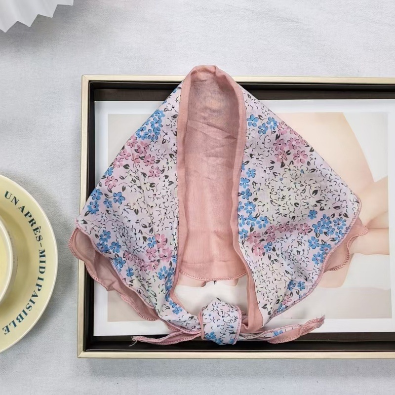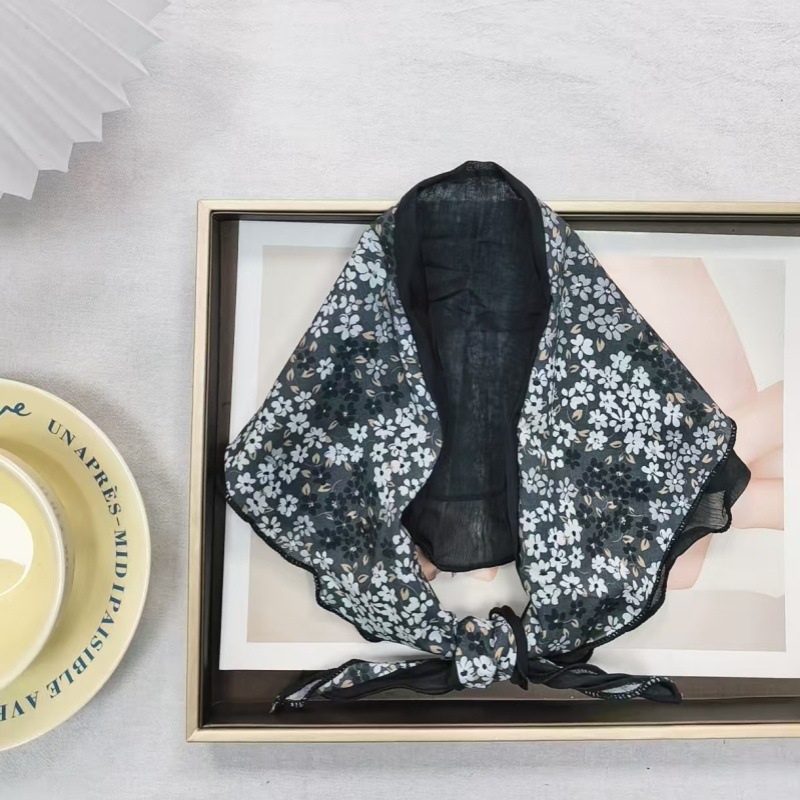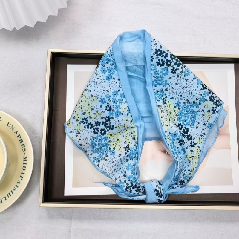 2025 새로운 예술적 신선한 색상 매칭 작은 스카프 스택 삼각형 스카프 여성 꽃 통기성 실크 스카프 목 보호 작은 스카프