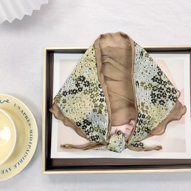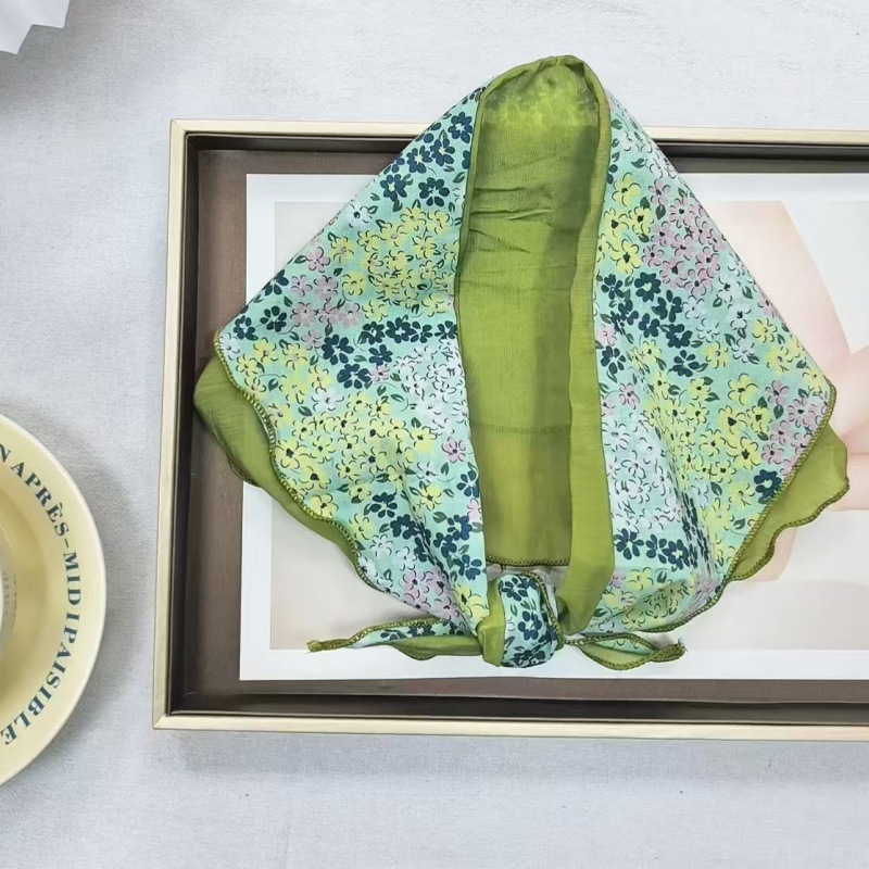 2025 새로운 예술적 신선한 색상 매칭 작은 스카프 스택 삼각형 스카프 여성 꽃 통기성 실크 스카프 목 보호 작은 스카프스토어 가기