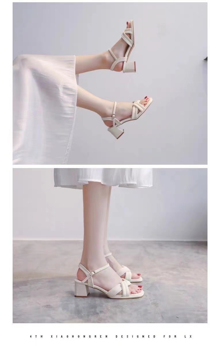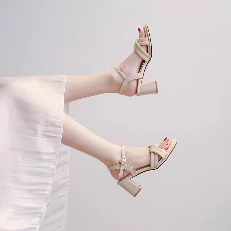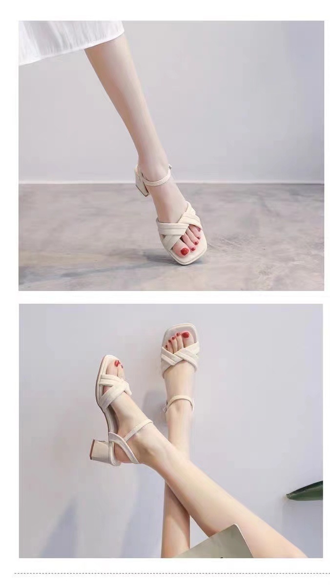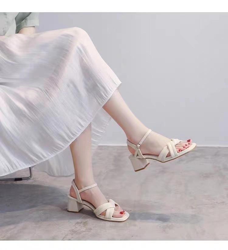 스커트를 곁들인 여성용 슬리퍼 샌들 2025 여름 새 신발 소프트 단독 하이힐 여성 외부는 로마 샌들을 착용합니다.스토어 가기