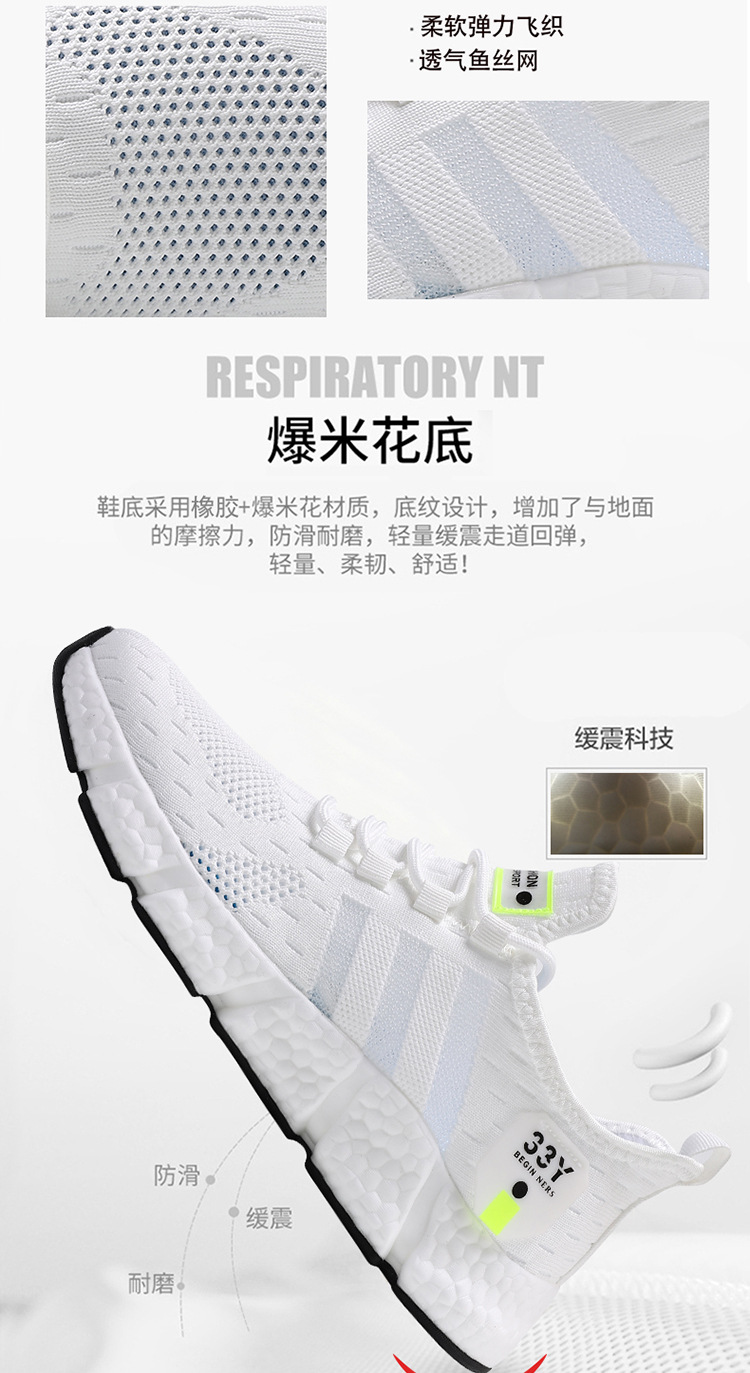 2025 팩토리 틱톡 새로운 팝콘 고무 결합 밑창 통기성 탄성 플라이 짠 신발 커플 메쉬 신발 핫 스타일스토어 가기
