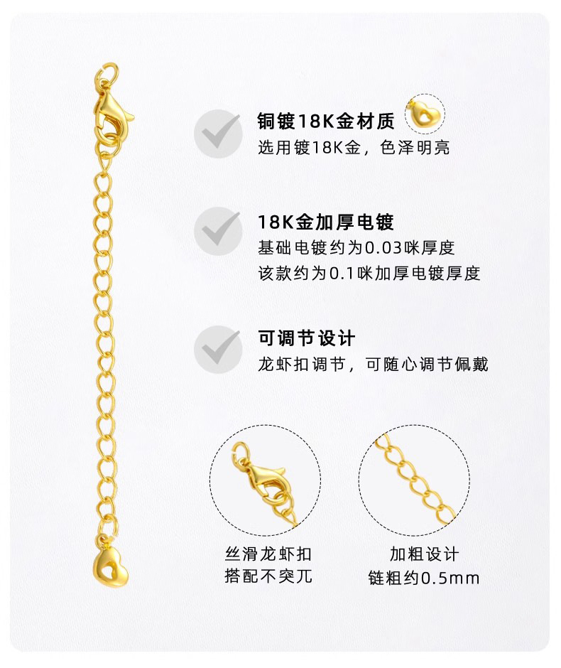 구리 도금 14K 진짜 금 색상 보존 체인 랍스터 버클 연장 체인 도매 수제 diy 팔찌 목걸이 연장 체인 테일 체인스토어 가기