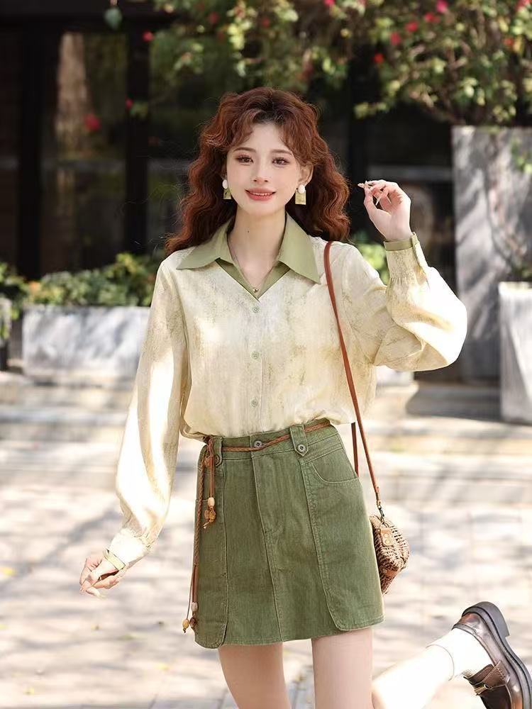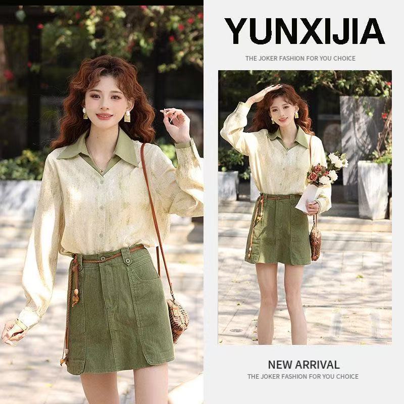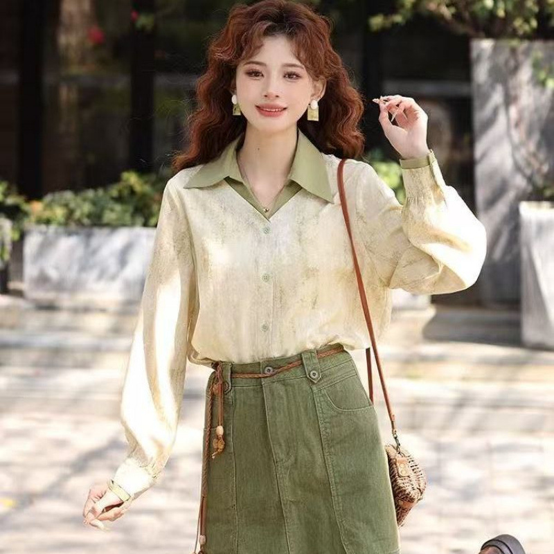 플러스 사이즈 봄은 여성의 2025 새로운 신선한 긴 소매 선 스크린 셔츠 세트를 착용합니다.스토어 가기