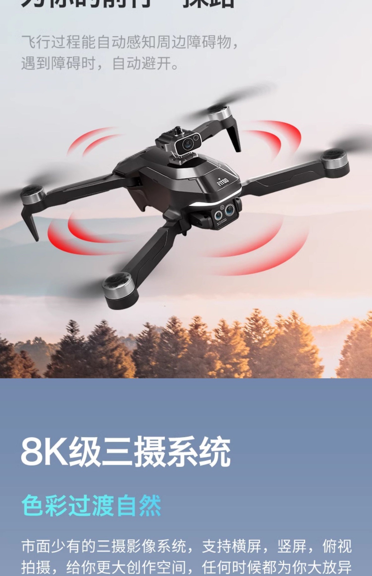 • 대형 8K 전자 제어식 3개 카메라[전문 브러시리스 모터 +540°장애물 회피 + 광학 흐름 호버링] 자동 복귀