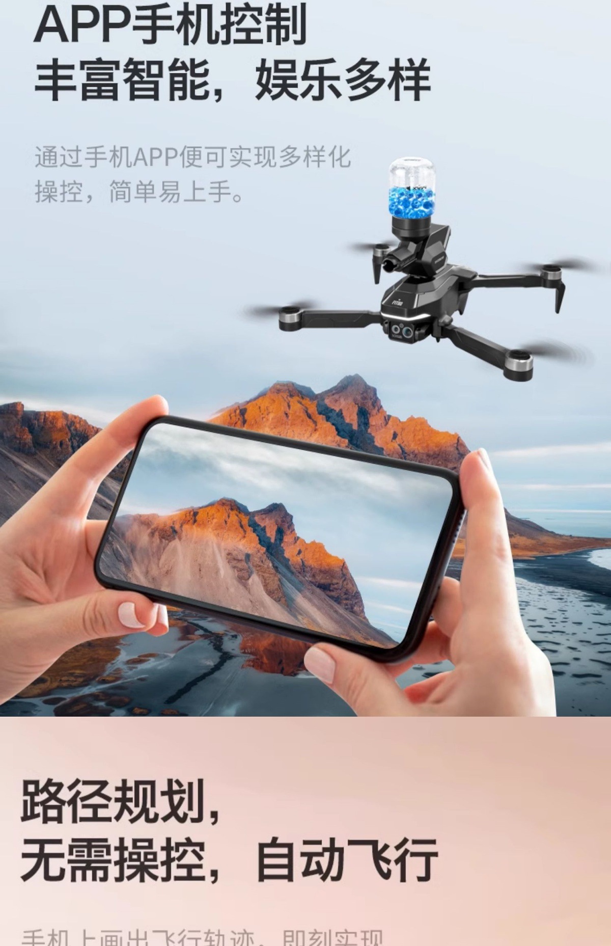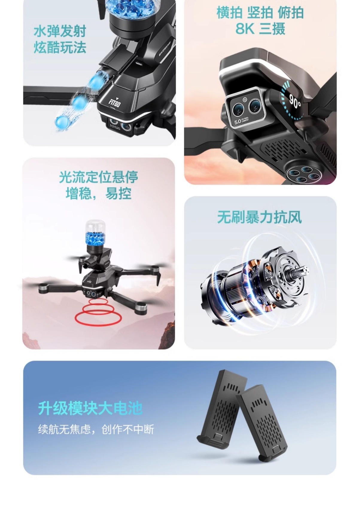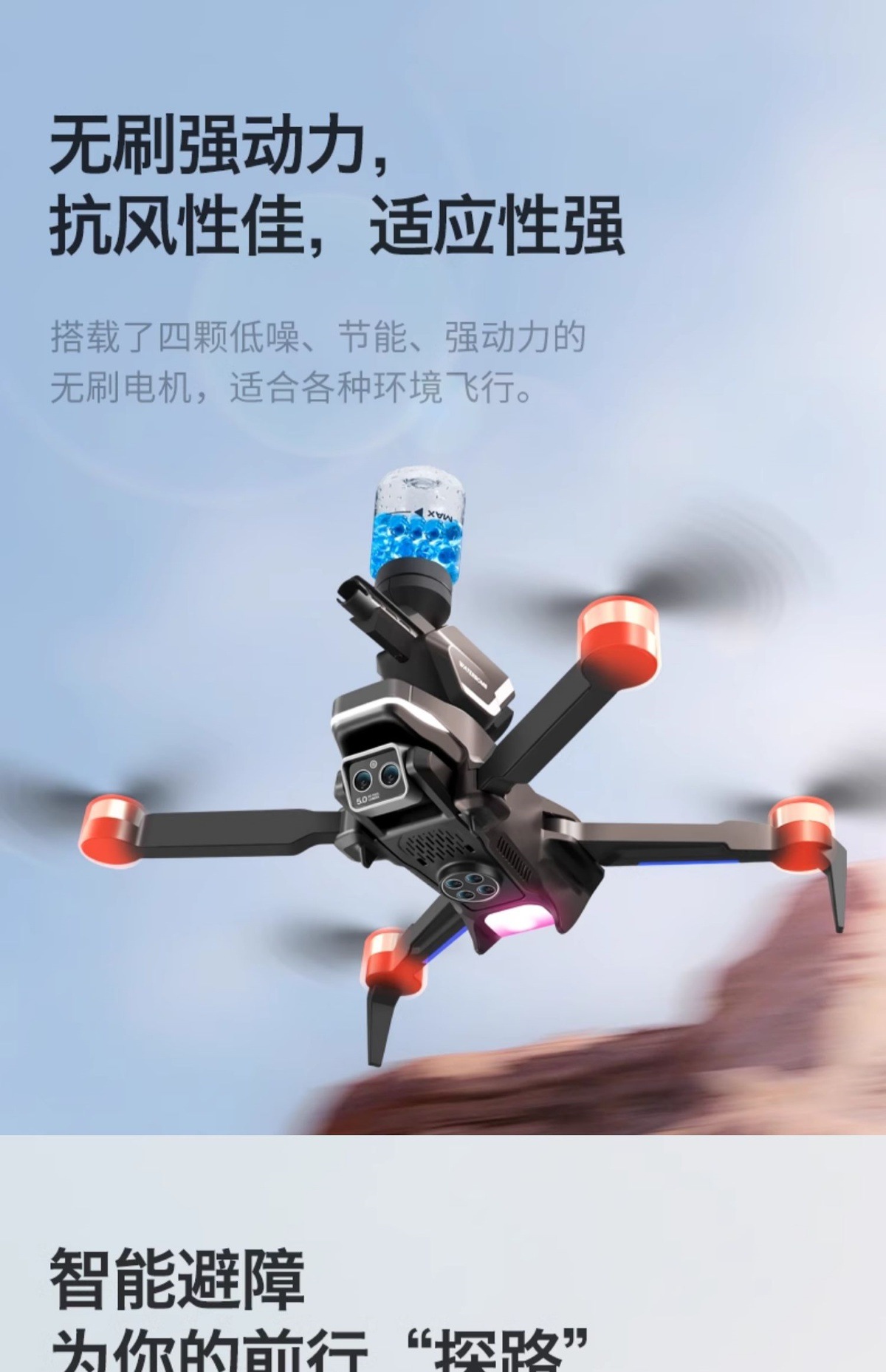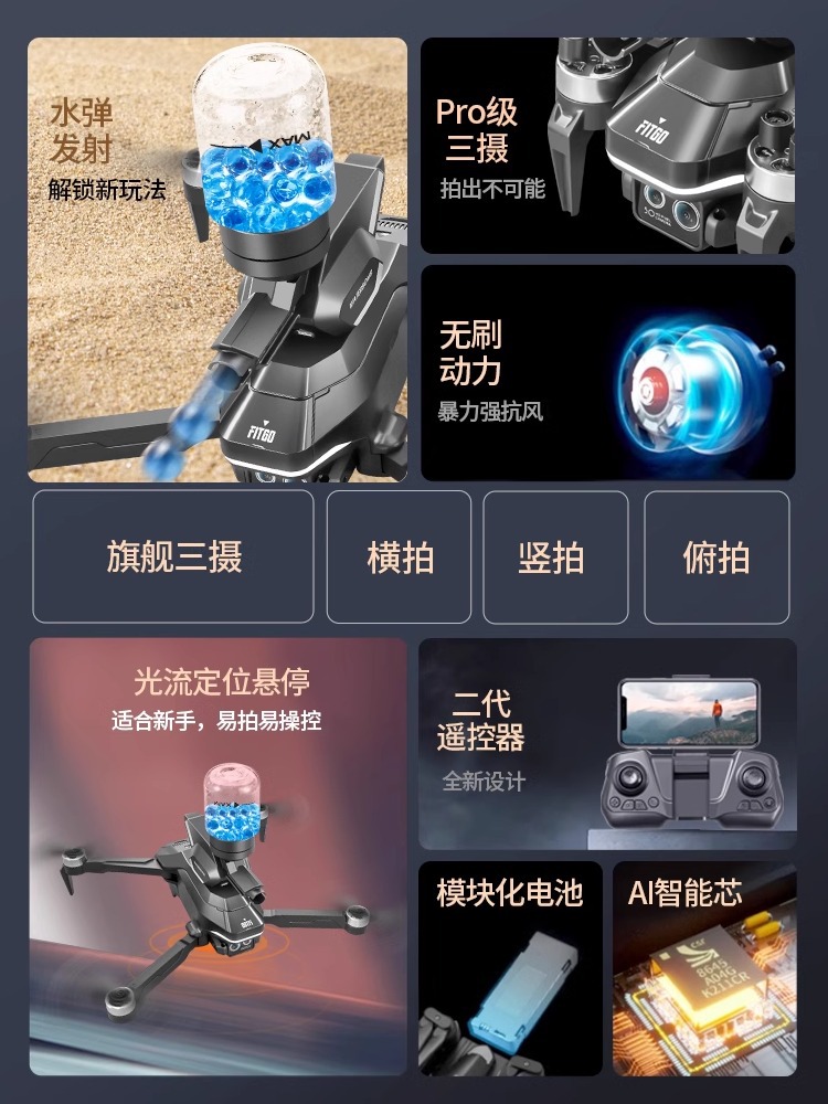 • [물폭탄 기능] 대형 8K 전자제어 트리플 카메라 [프로페셔널 브러시리스 모터 +540°장애물 회피 + 광학 흐름 호버링] 자동 복귀