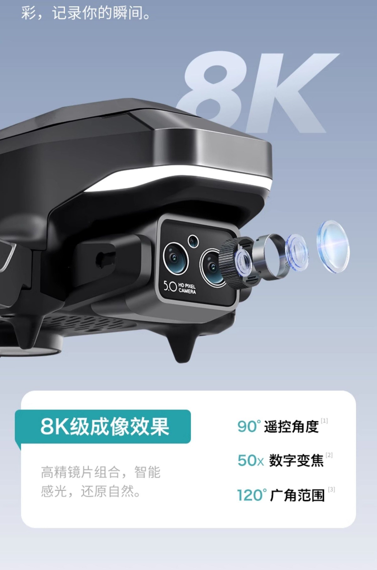 • 8K 듀얼 카메라 [스턴트 롤/스마트 호버] 원클릭 리턴