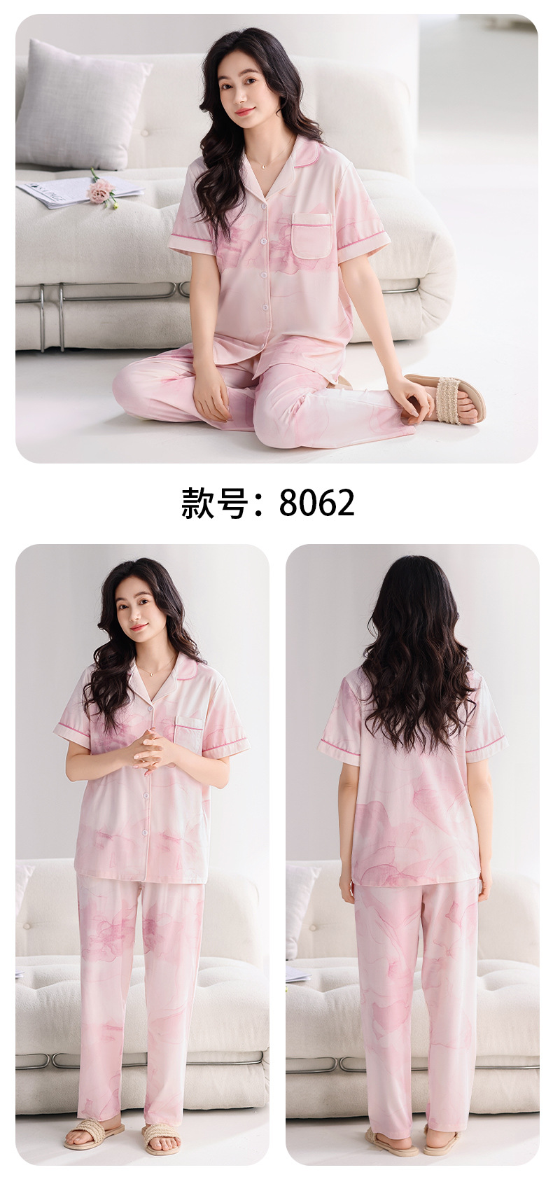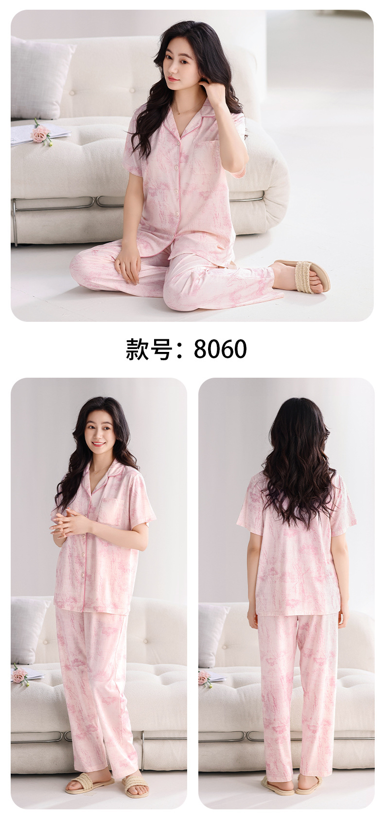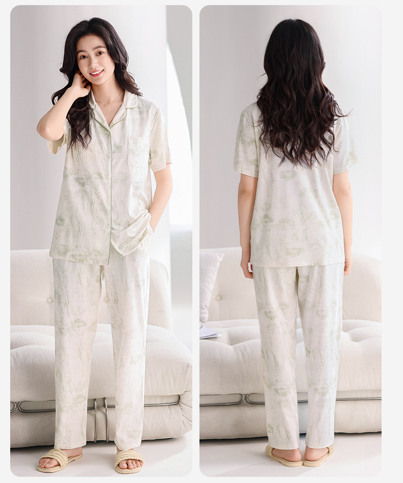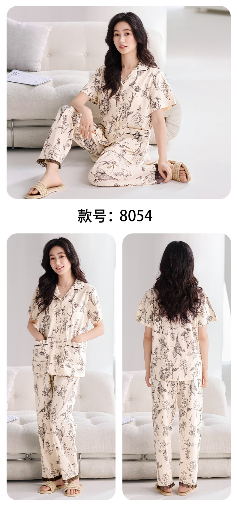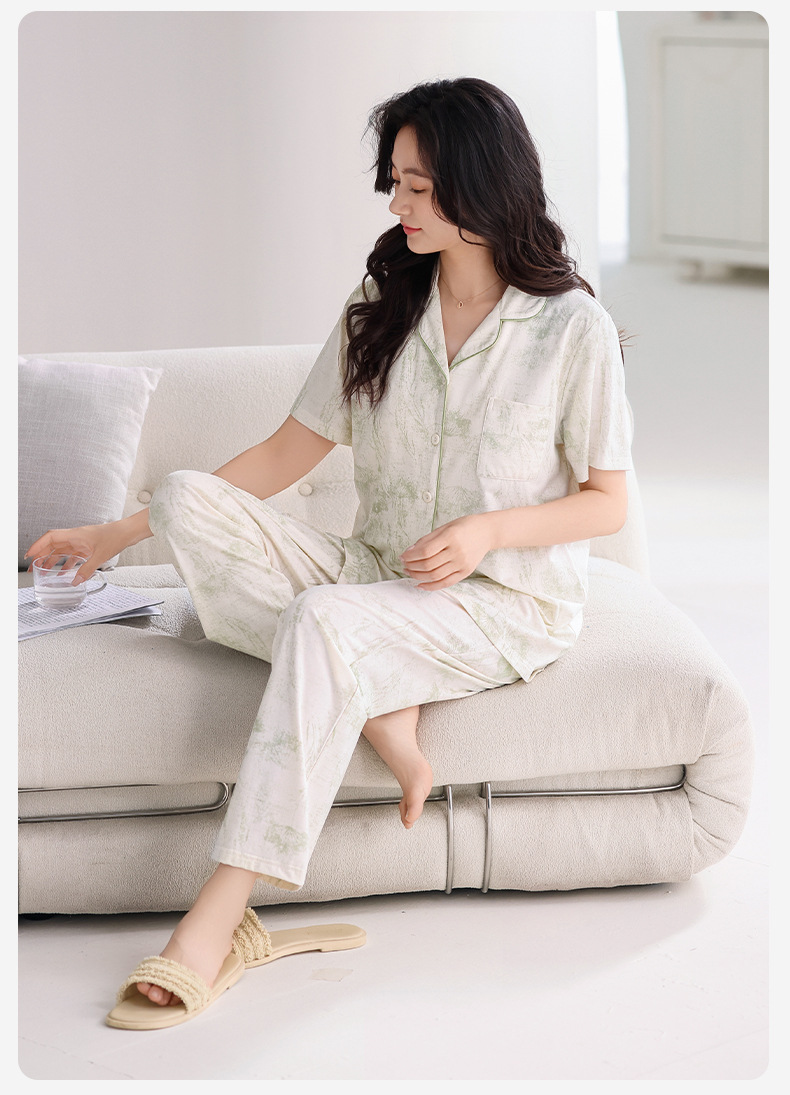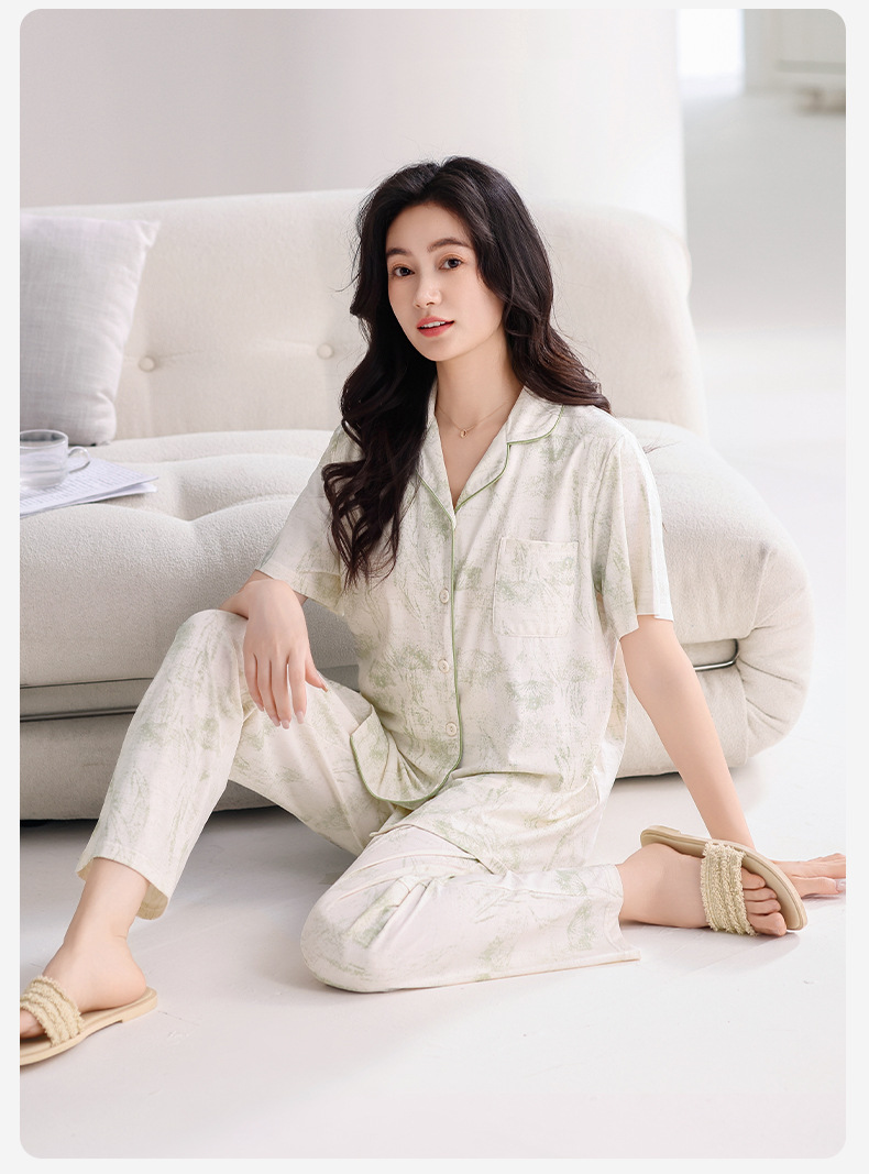 가슴 패드가 달린 잠옷 여자 여름면 반소매 바지 홈 옷 2025 새로운 여름 얇은 플러스 사이즈 투피스 세트스토어 가기