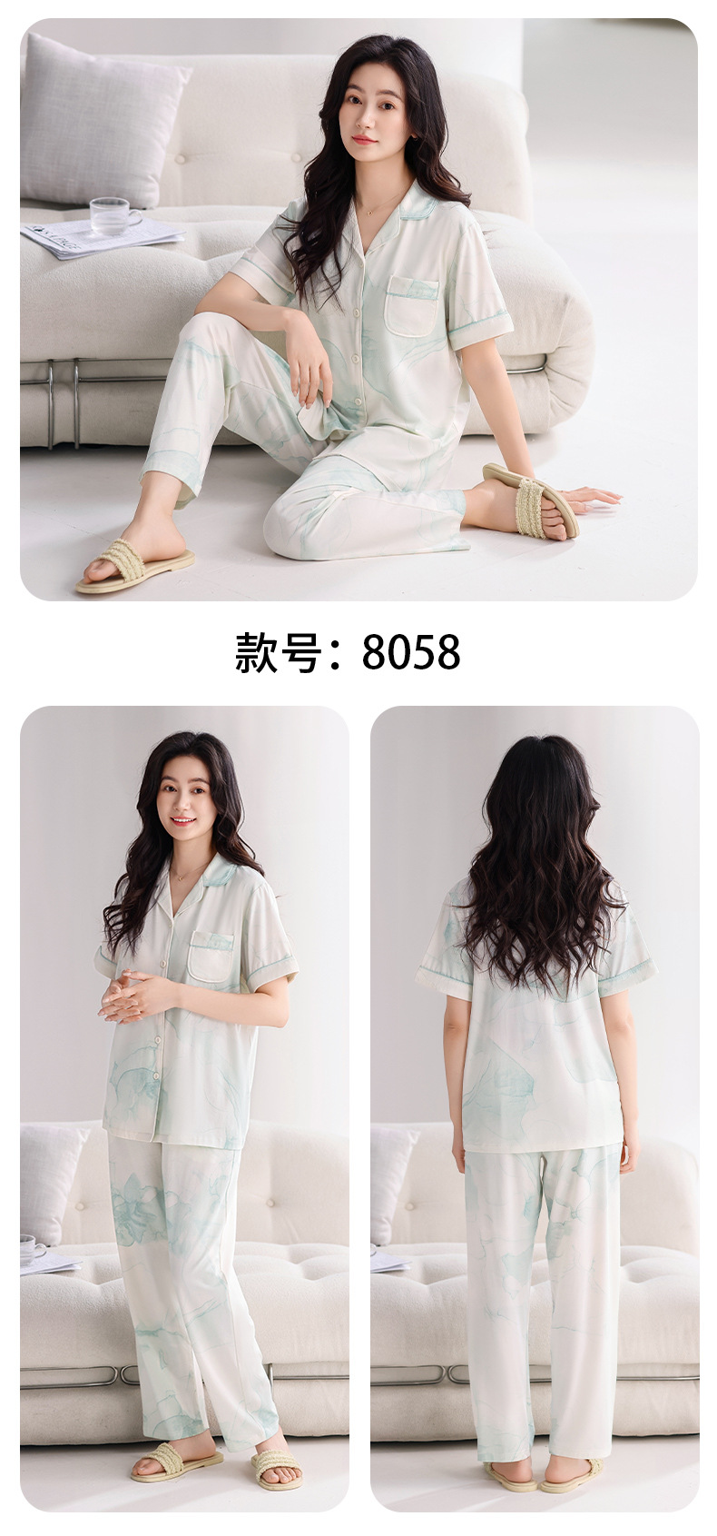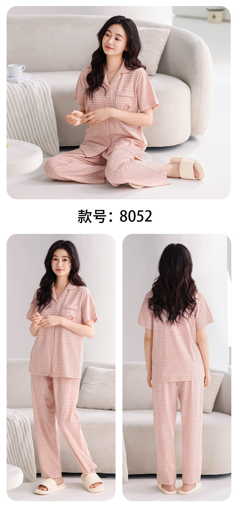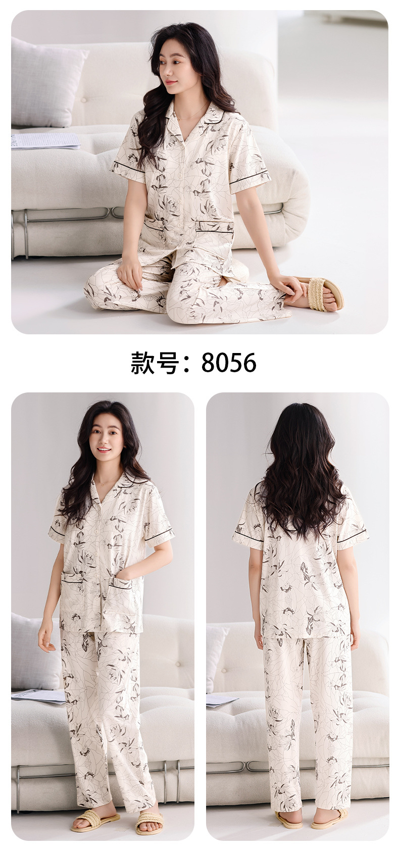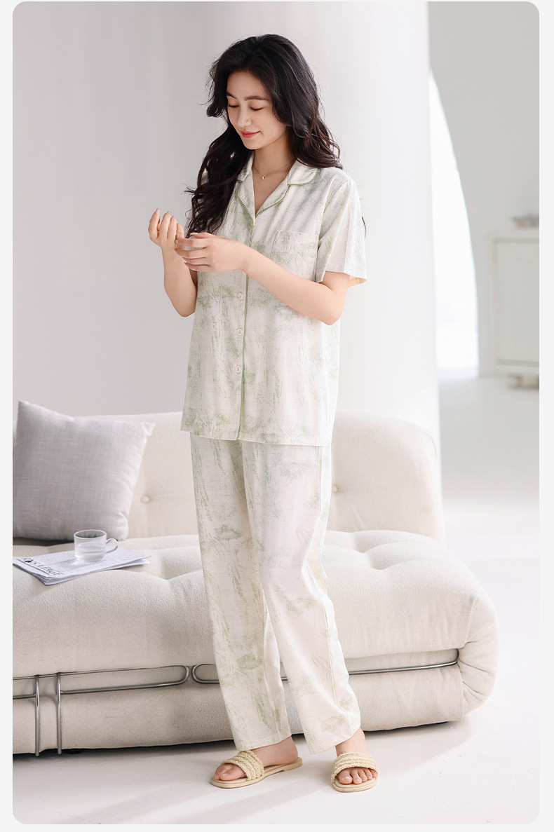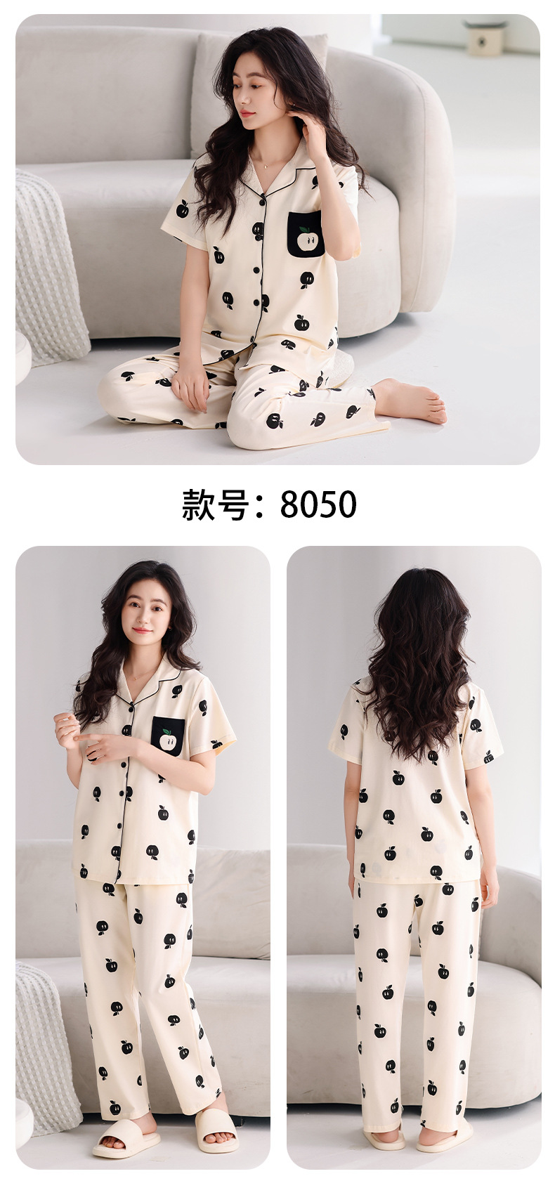 가슴 패드가 달린 잠옷 여자 여름면 반소매 바지 홈 옷 2025 새로운 여름 얇은 플러스 사이즈 투피스 세트스토어 가기