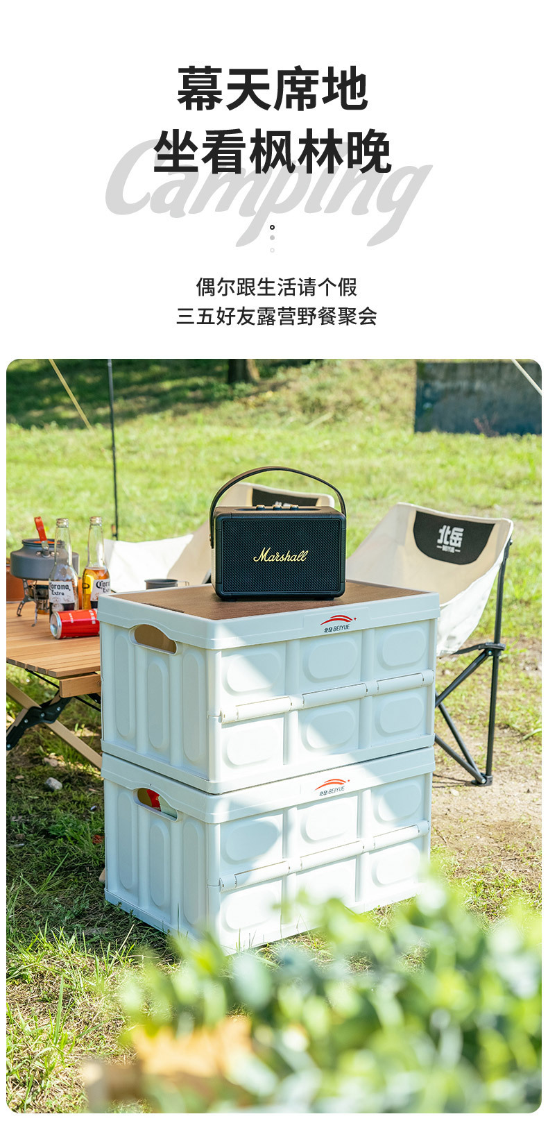 北岳户外收纳箱车载整理储物折叠箱便携式野餐小桌子露营装备用品