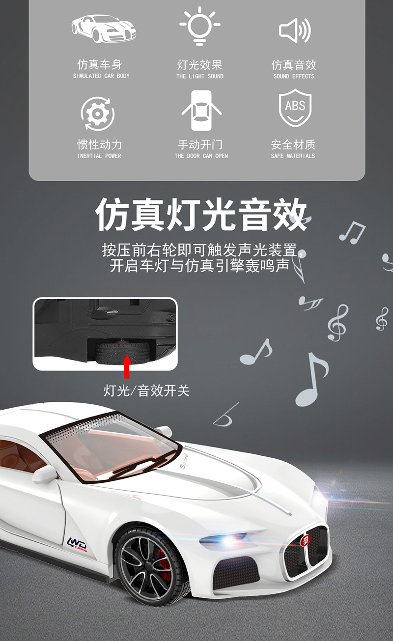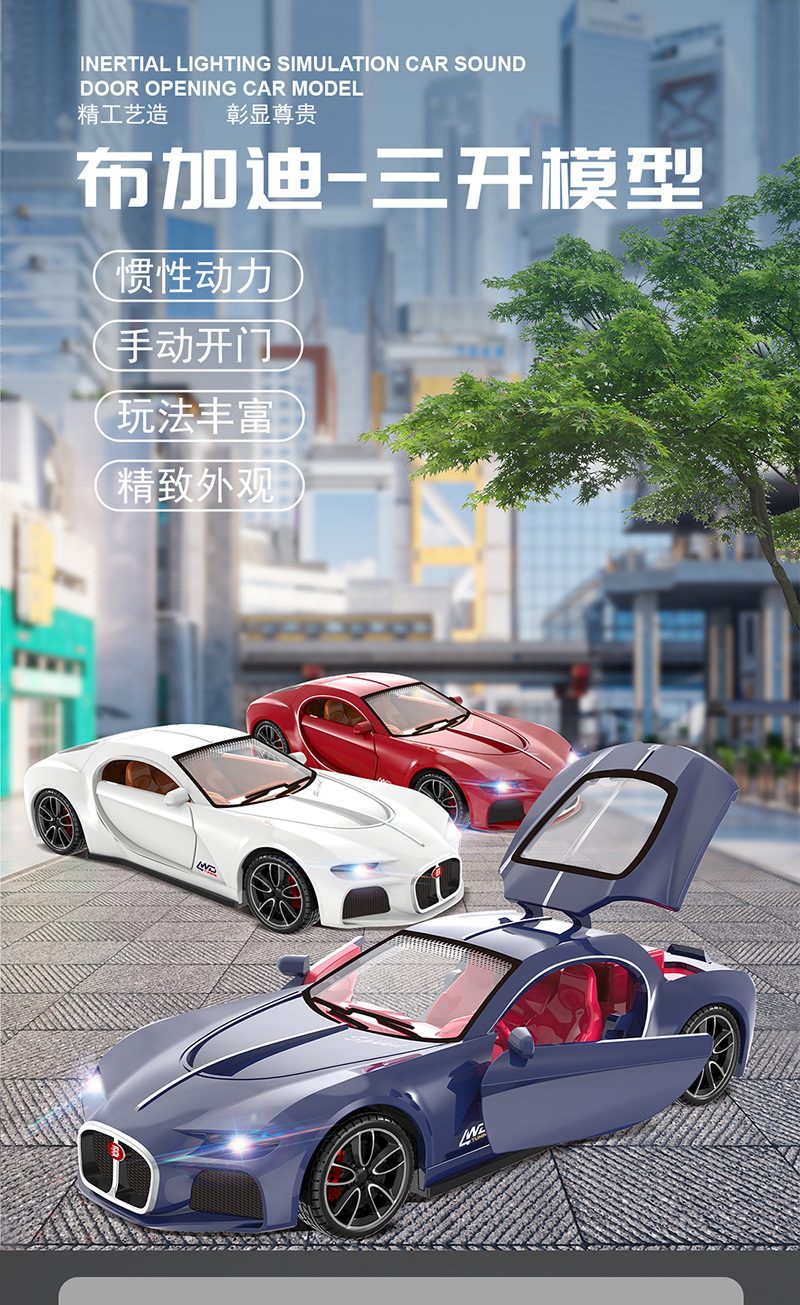 3 도어 부가티 관성 앞으로 럭셔리카 로고 자동차 모델 슈퍼카 레이싱 카 모델 라이트 뮤직 보이 어린이 장난감스토어 가기
