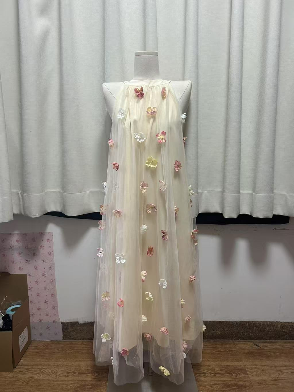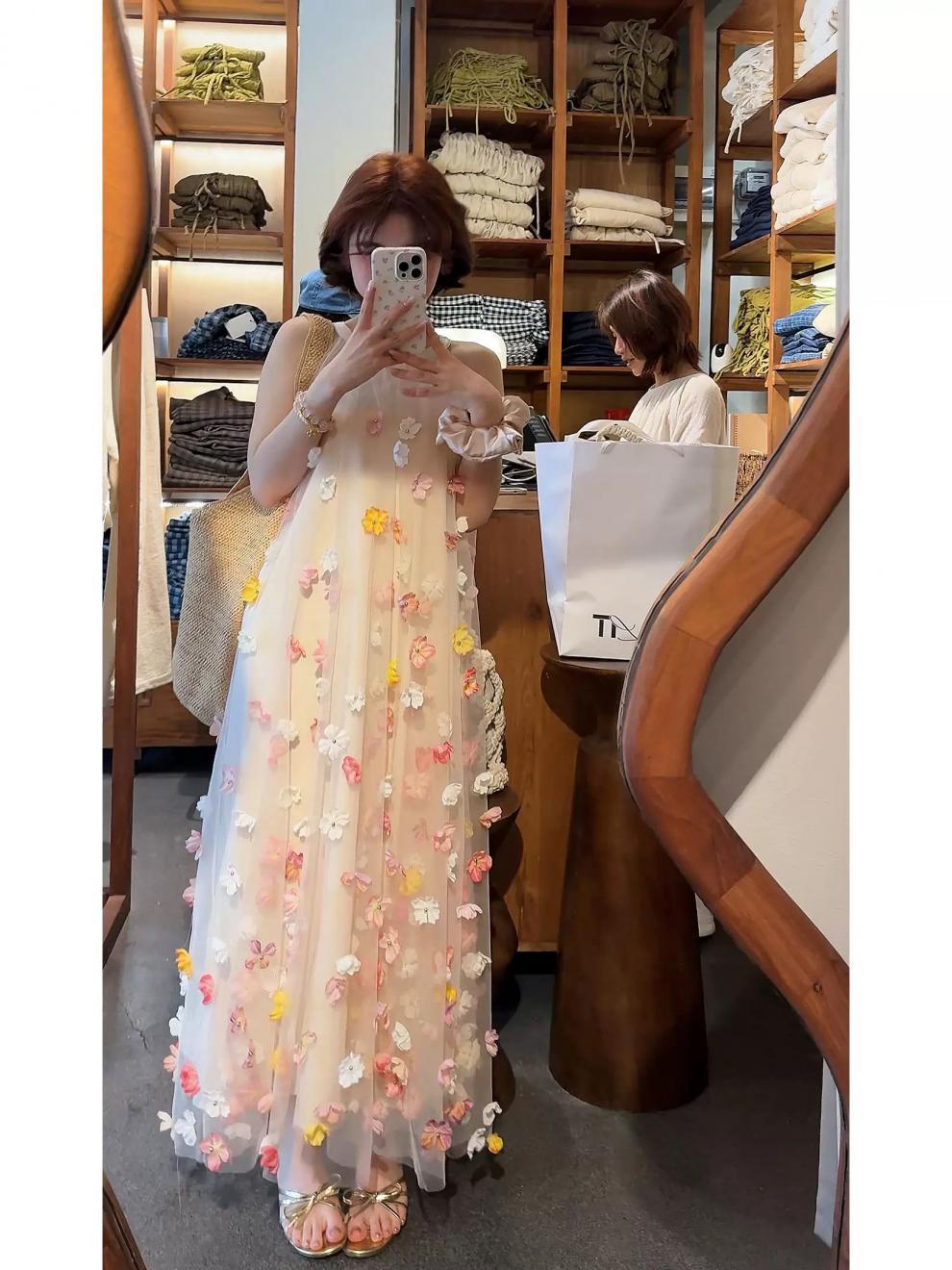 재고 봄 새싹 잘 생긴 꽃 확산-봄 새로운 요정 3 차원 꽃 긴 목 조끼 원피스스토어 가기