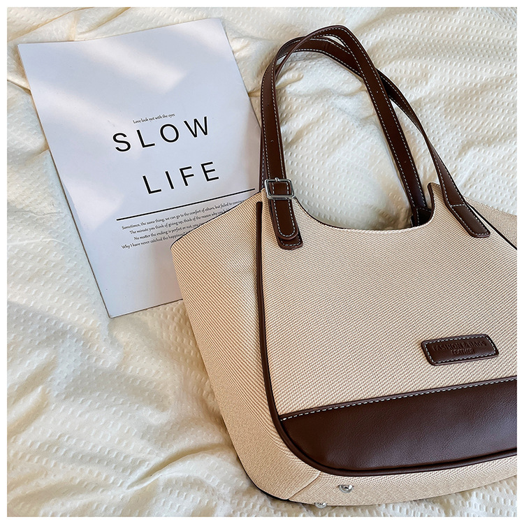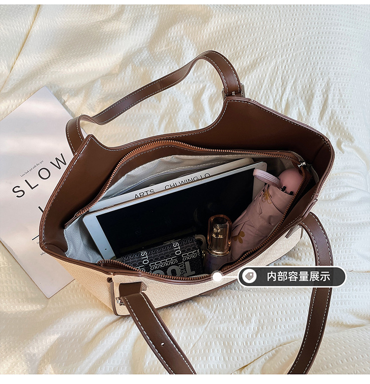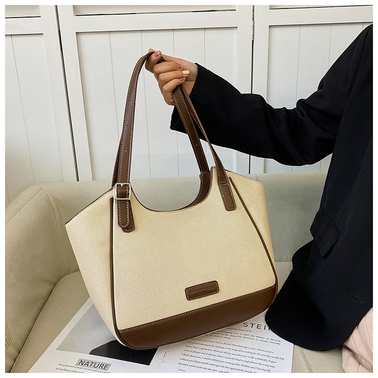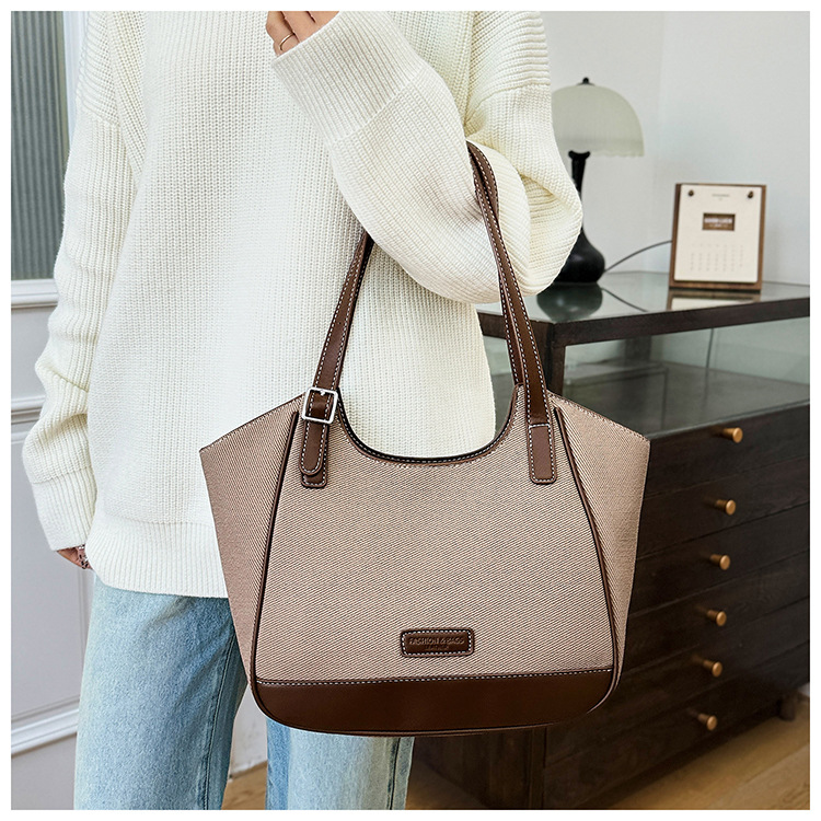 대외 무역 패션 대용량 대비 컬러 토트 백 여성의 2024 새로운 캐주얼 올 매치 언더암 숄더 백 핸드백