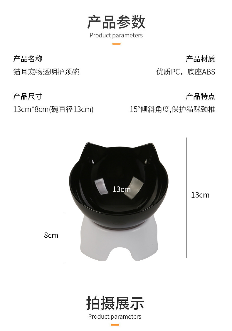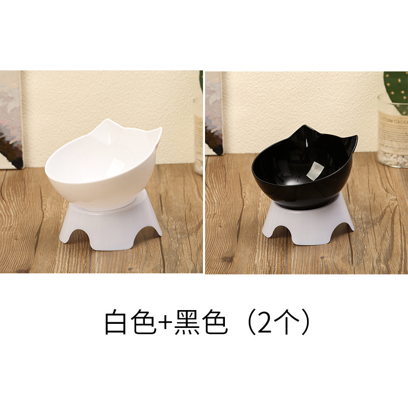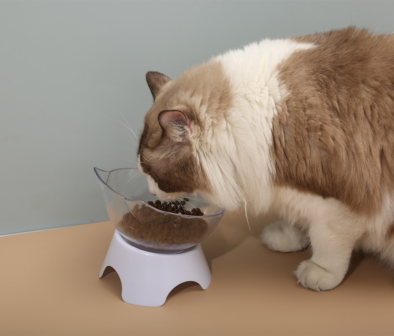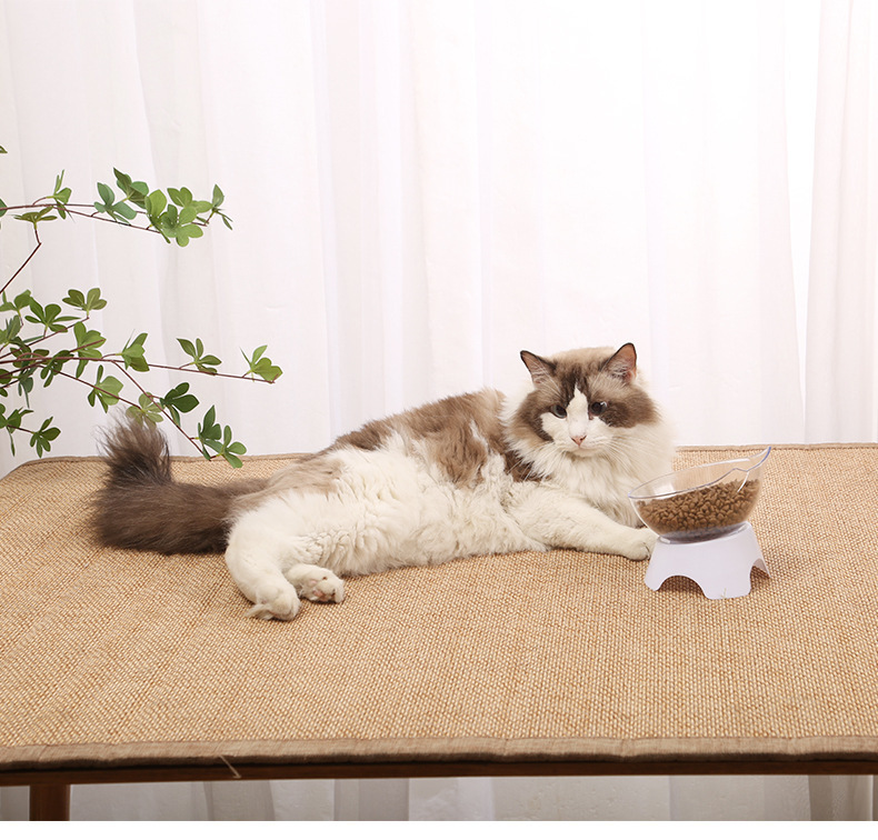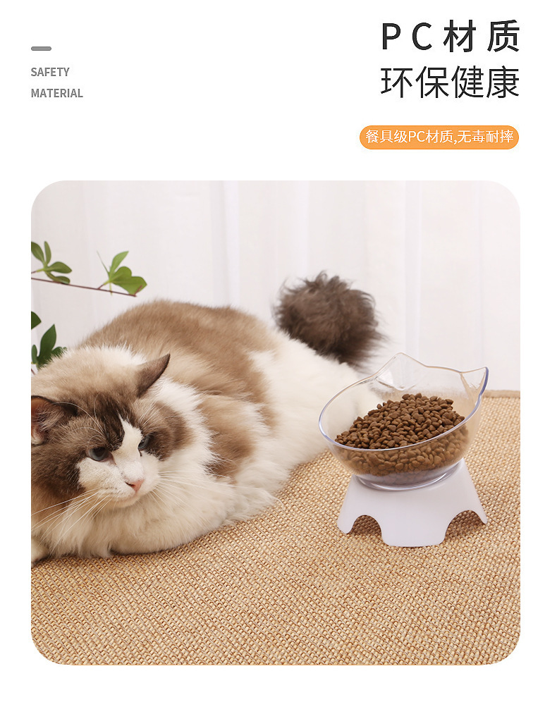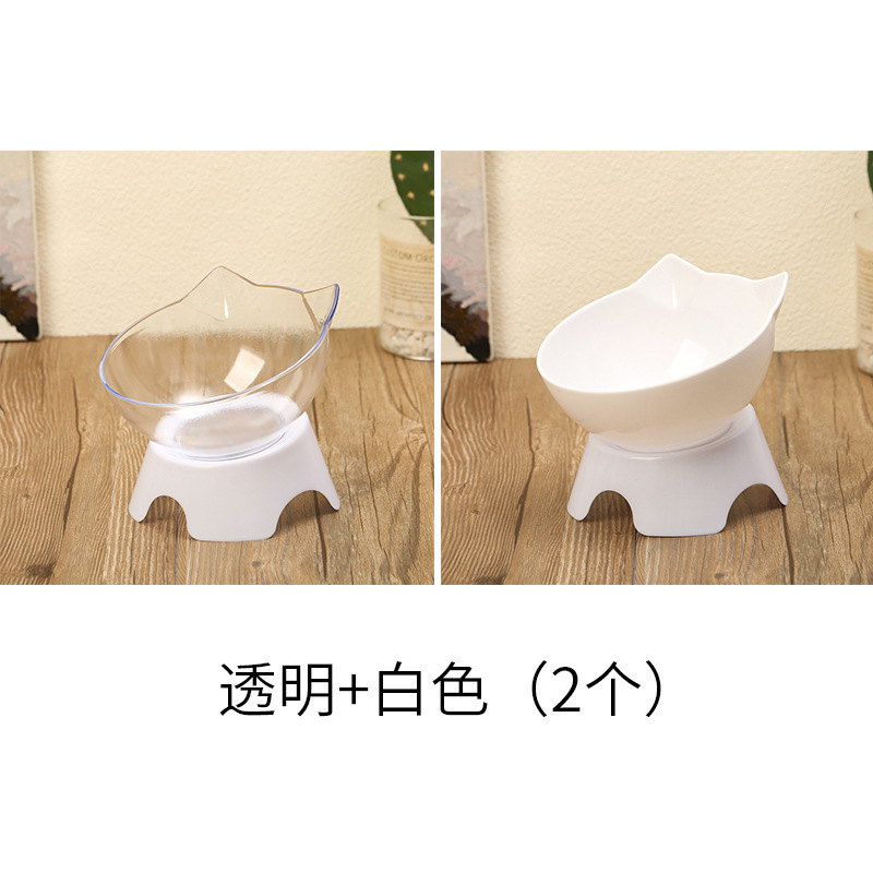 고양이 그릇 더블 그릇 경사진 입 투명 더블 그릇 목 보호 경사진 고양이 먹이 그릇 비 세라믹 애완 동물 그릇 고양이 그릇 개 밥 그릇