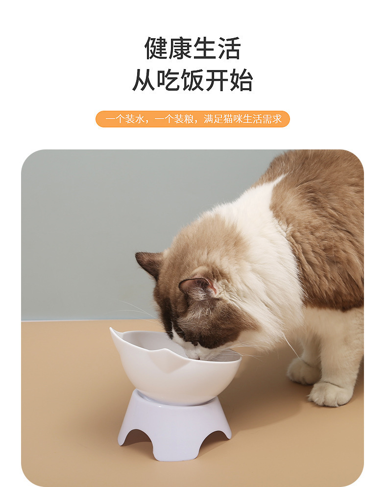 고양이 그릇 더블 그릇 경사진 입 투명 더블 그릇 목 보호 경사진 고양이 먹이 그릇 비 세라믹 애완 동물 그릇 고양이 그릇 개 밥 그릇스토어 가기