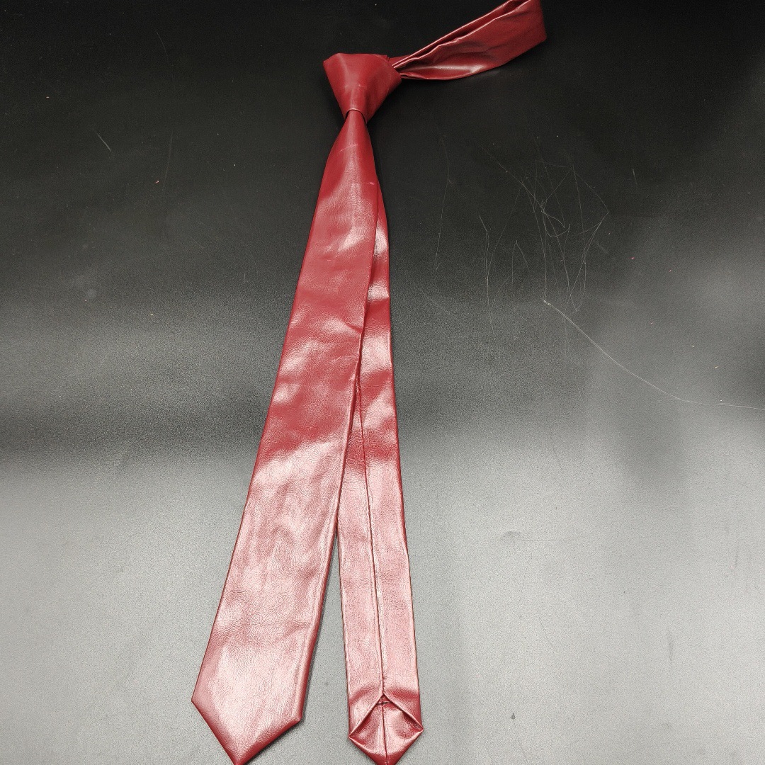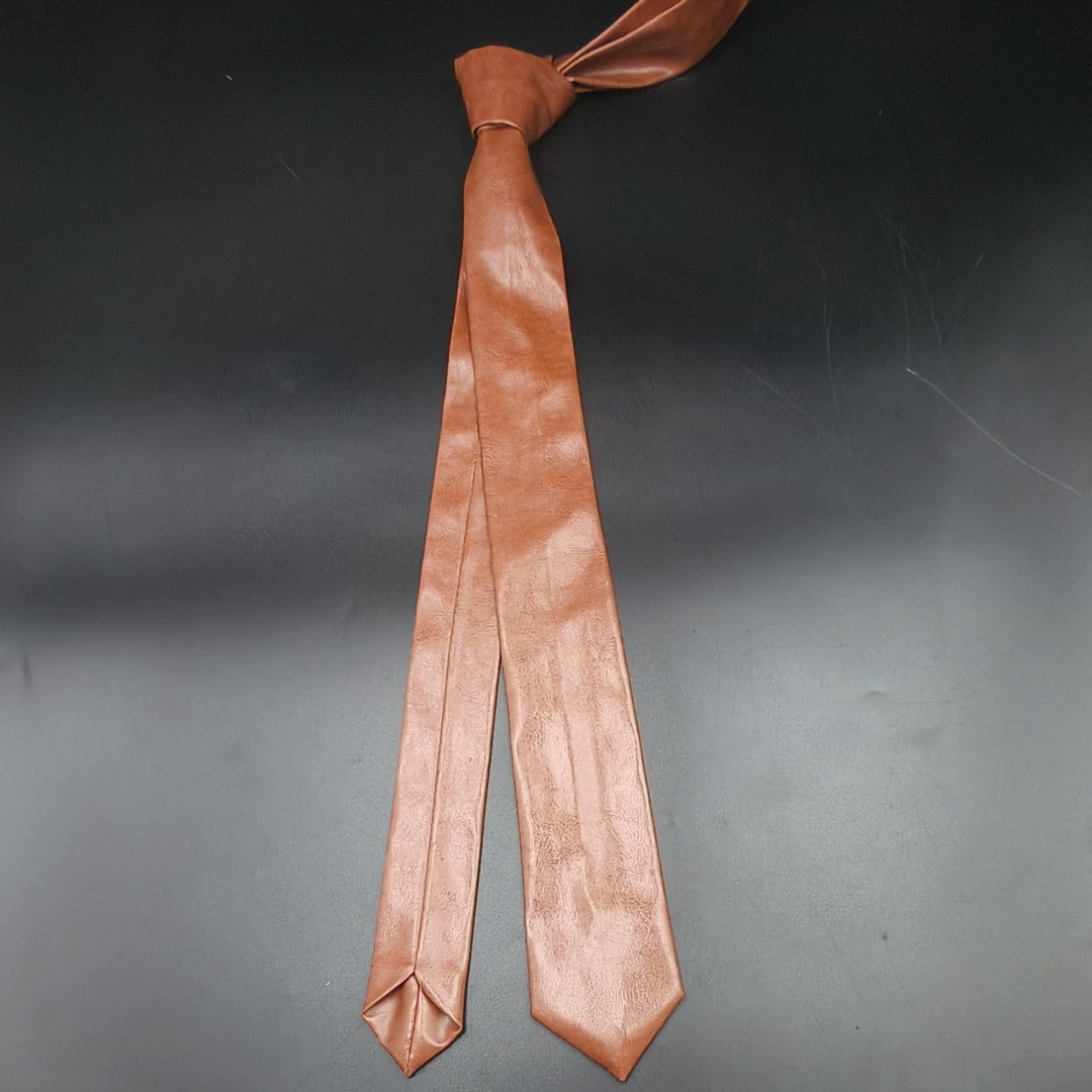 리안다이 상표 블랙 브라운 PU 가죽 넥타이 여성용 레트로 솔리드 컬러 슬림 버전 개성 있는 패셔너블 남성용 멋진 스타일스토어 가기