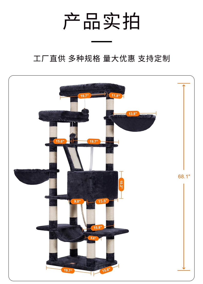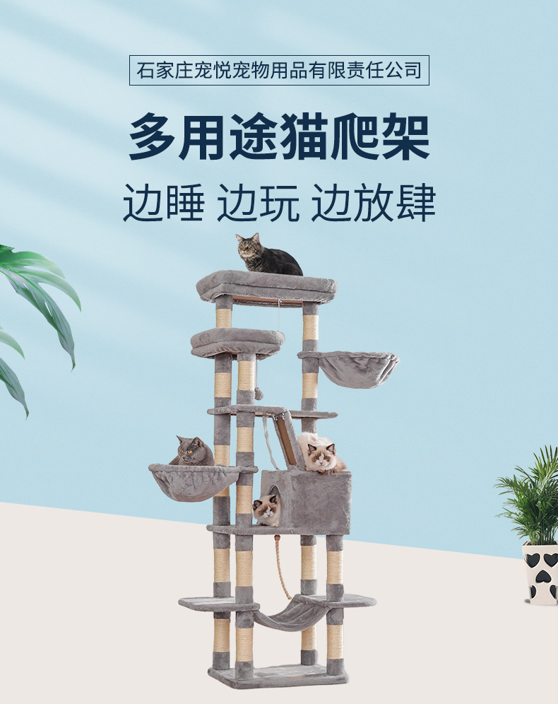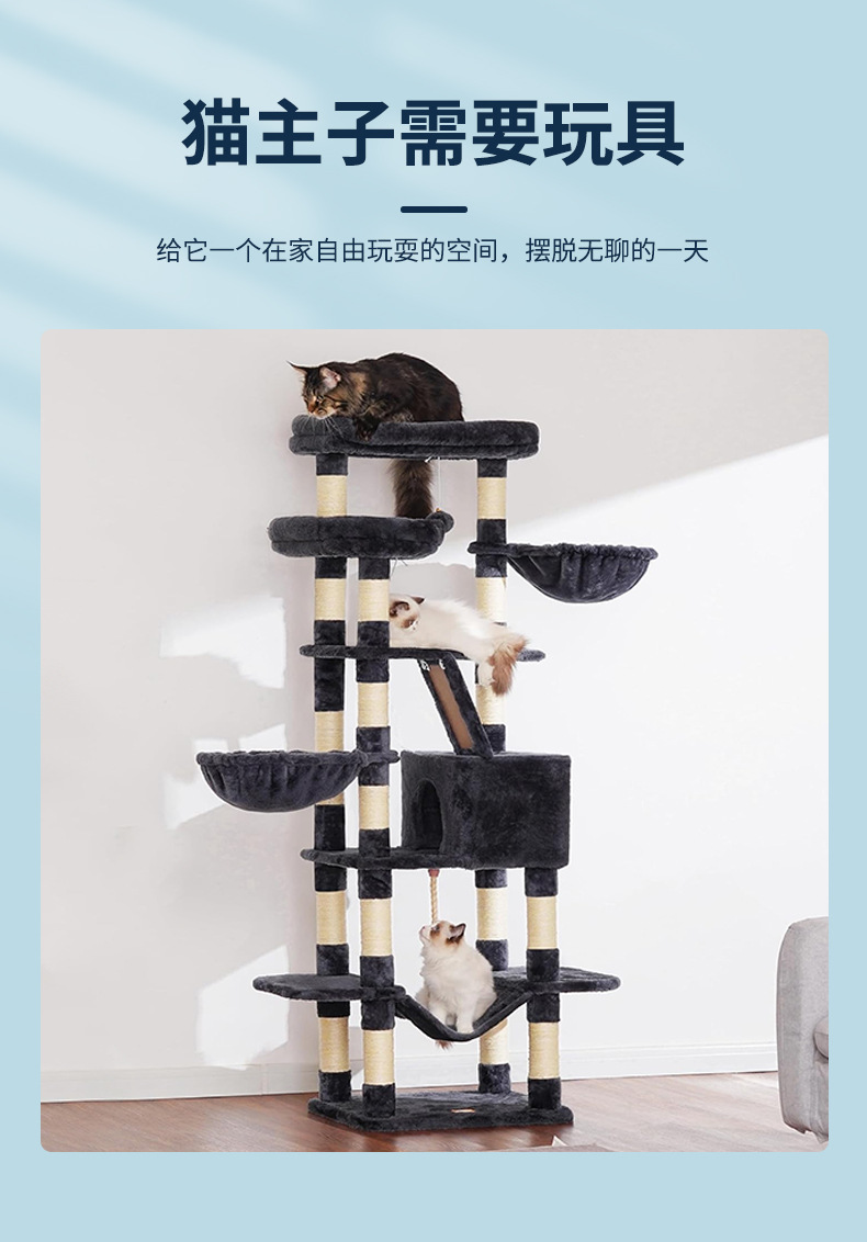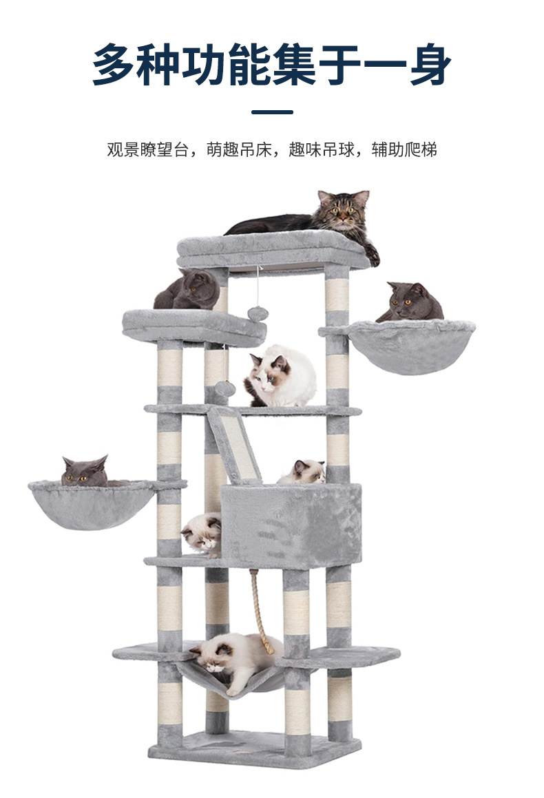 고양이 클라이밍 프레임, 대형 고양이 전용, 고양이 집과 고양이 나무 일체형, 공간 절약형, 해외 무역 배송, 높이 조절 가능