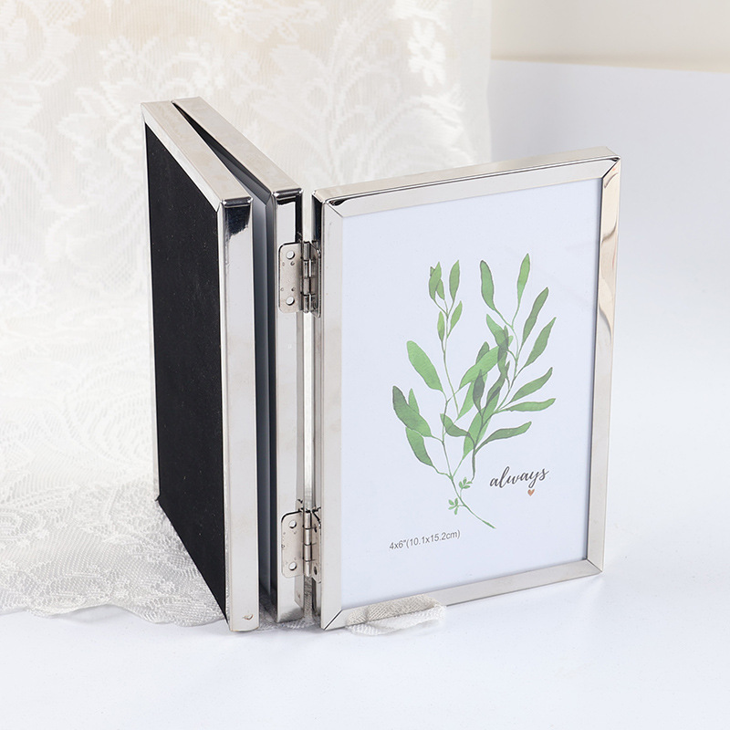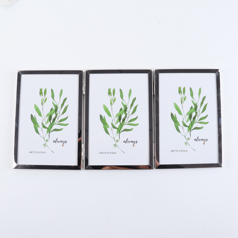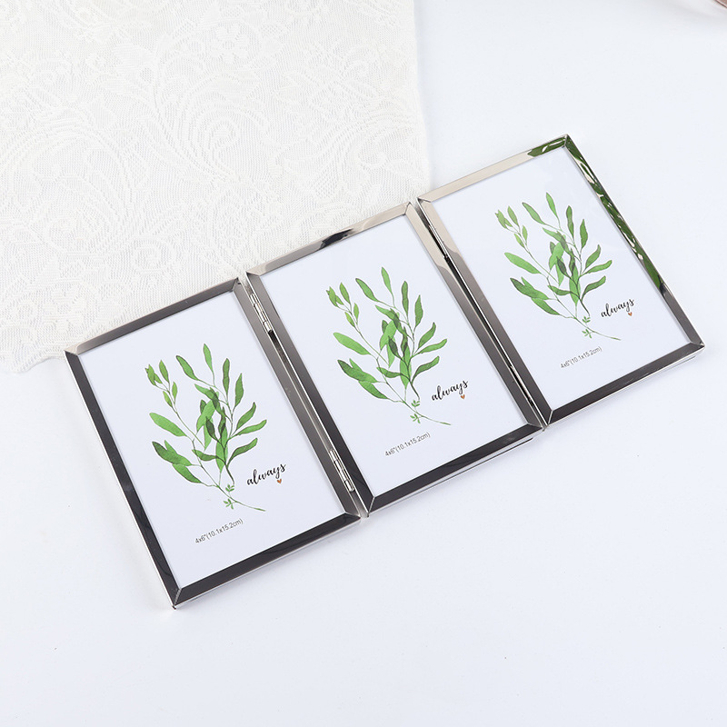 창조적 인 결합 된 조합 접이식 사진 프레임 테이블 트리플 6 인치 7 인치 8 인치 스테인레스 스틸 금속 트리플 접이식 사진 프레임 도매스토어 가기