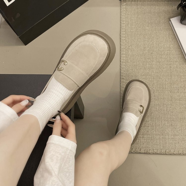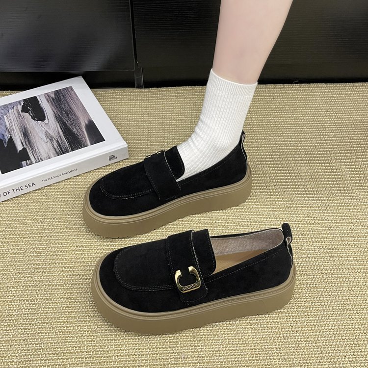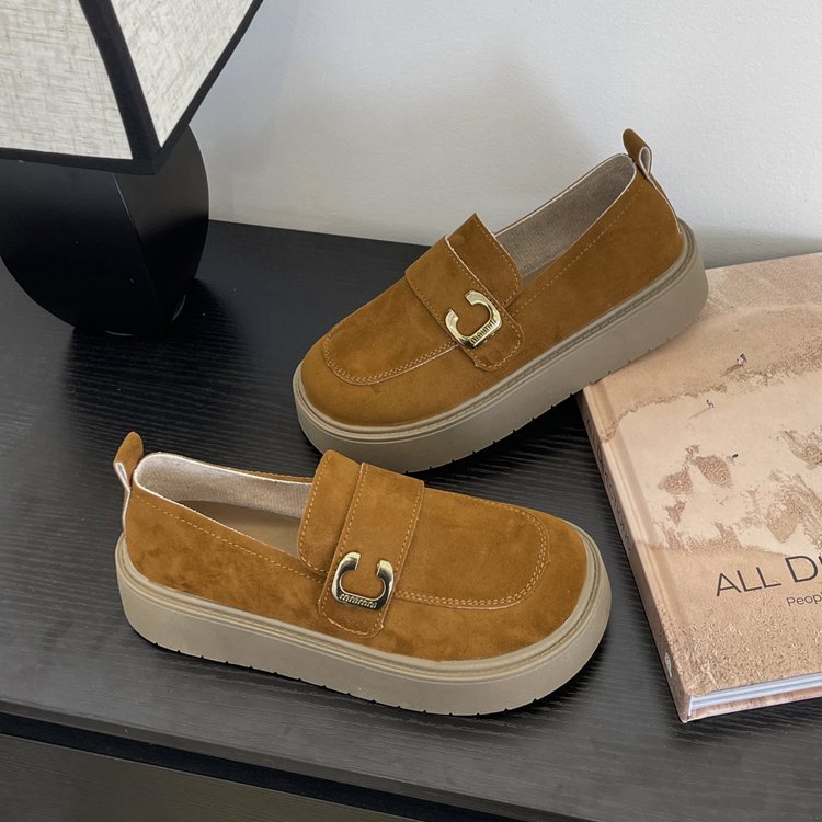 대외 무역 두꺼운 밑창 Boken 로퍼 도매 2025 봄, 가을 새로운 스웨이드 슬립 온 복고풍 플랫폼 신발 여성용스토어 가기