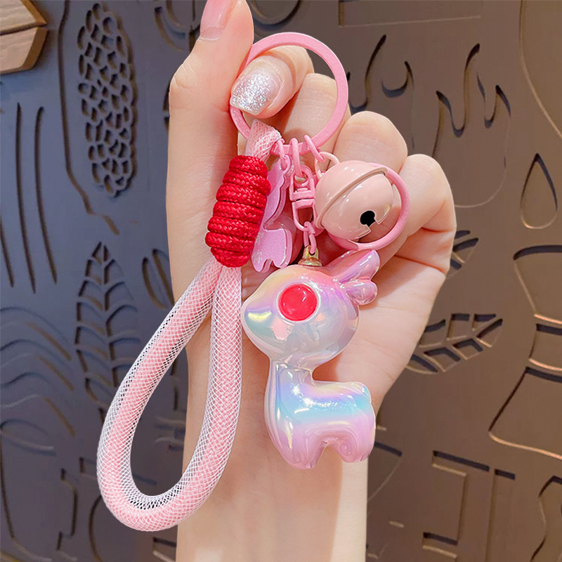 만화 다채로운 Fawn 자동차 키 체인 가방 펜던트 여성 커플 Schoolbag 키 체인 인형 교수형 작은 선물