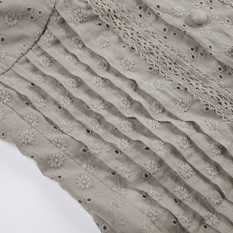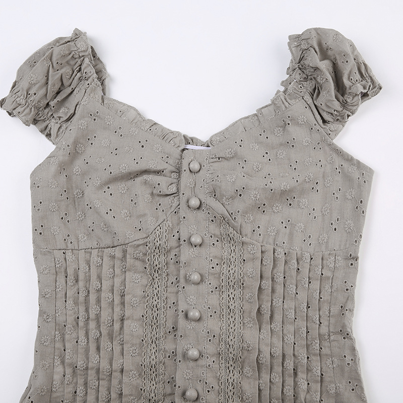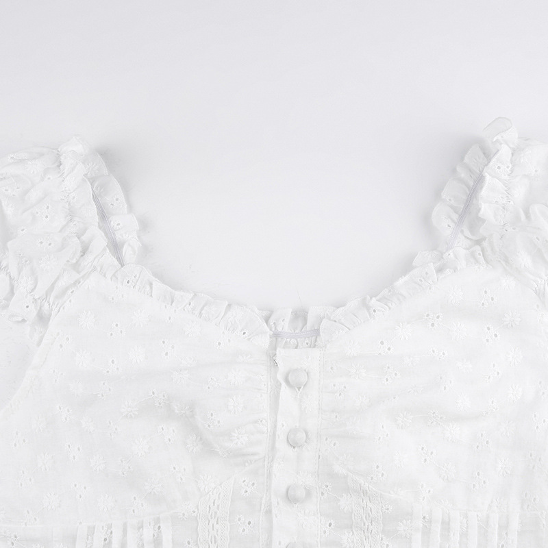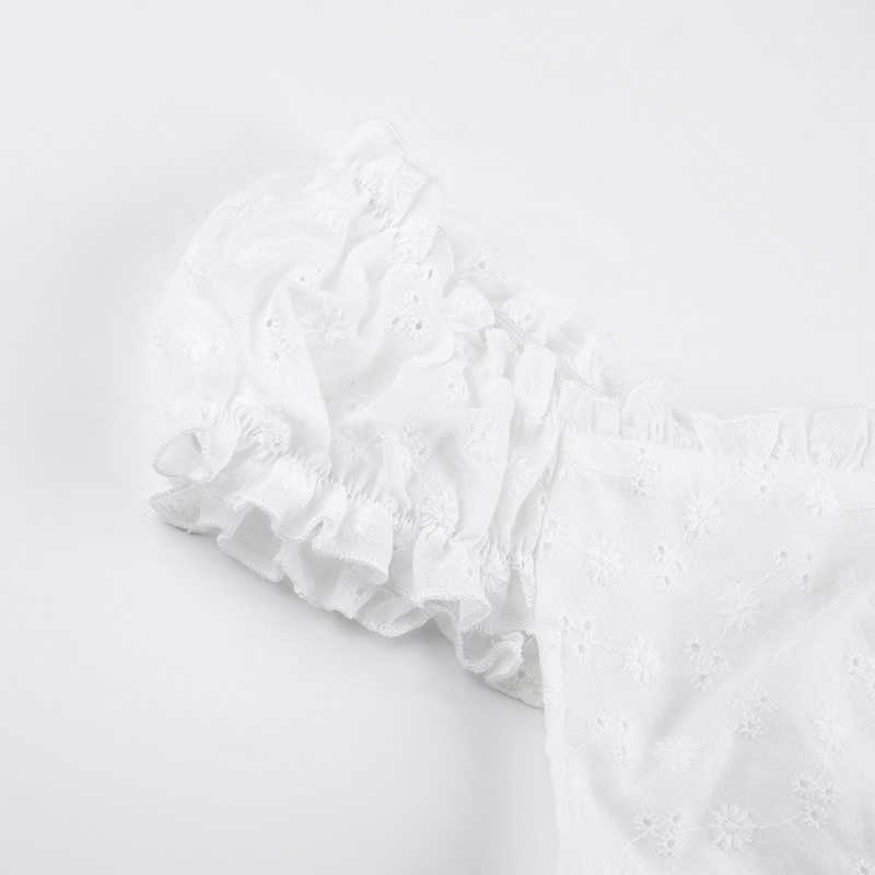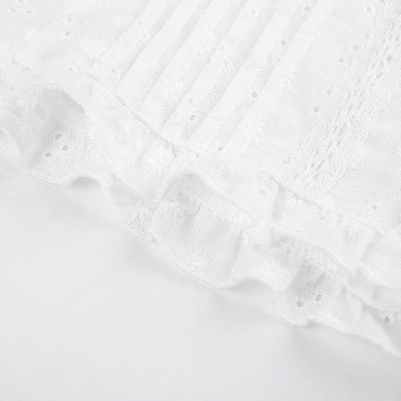 대외 무역 달콤하고 매운 소녀의 주름진 레이스 셔츠 프랑스 스타일 빈티지 순수 욕망 퍼프 슬리브 V 넥 캐주얼 티셔츠