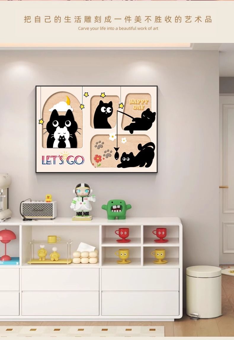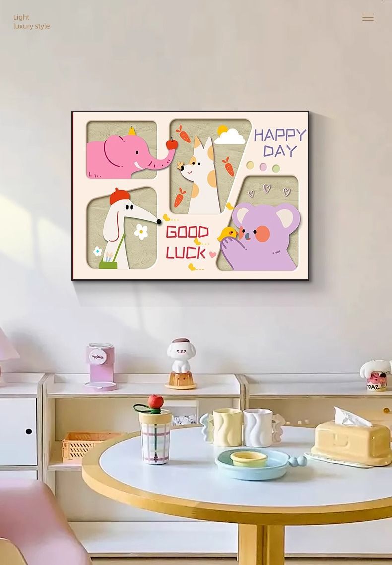 도파민 거실 장식 그림 크림 만화 레스토랑 그림 소파 배경 벽 그림 침실 어린이 방 벽 그림