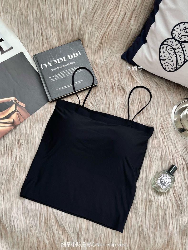 여성용 어깨 추적없는 아이스 실크 카미 솔 조끼 얇은 가슴 패드 내베이스 안티 워킹 튜브 탑 아우터 아름다운 등