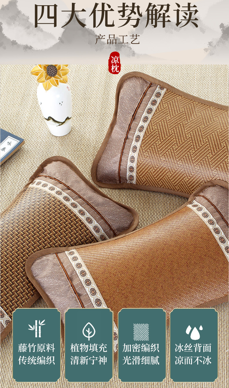 여름 차 얼음 등나무 베개 베개 베개 핵심 자궁 경부 척추 보호 수면 가정 쌍 학생 기숙사 단일 전체 머리 남성