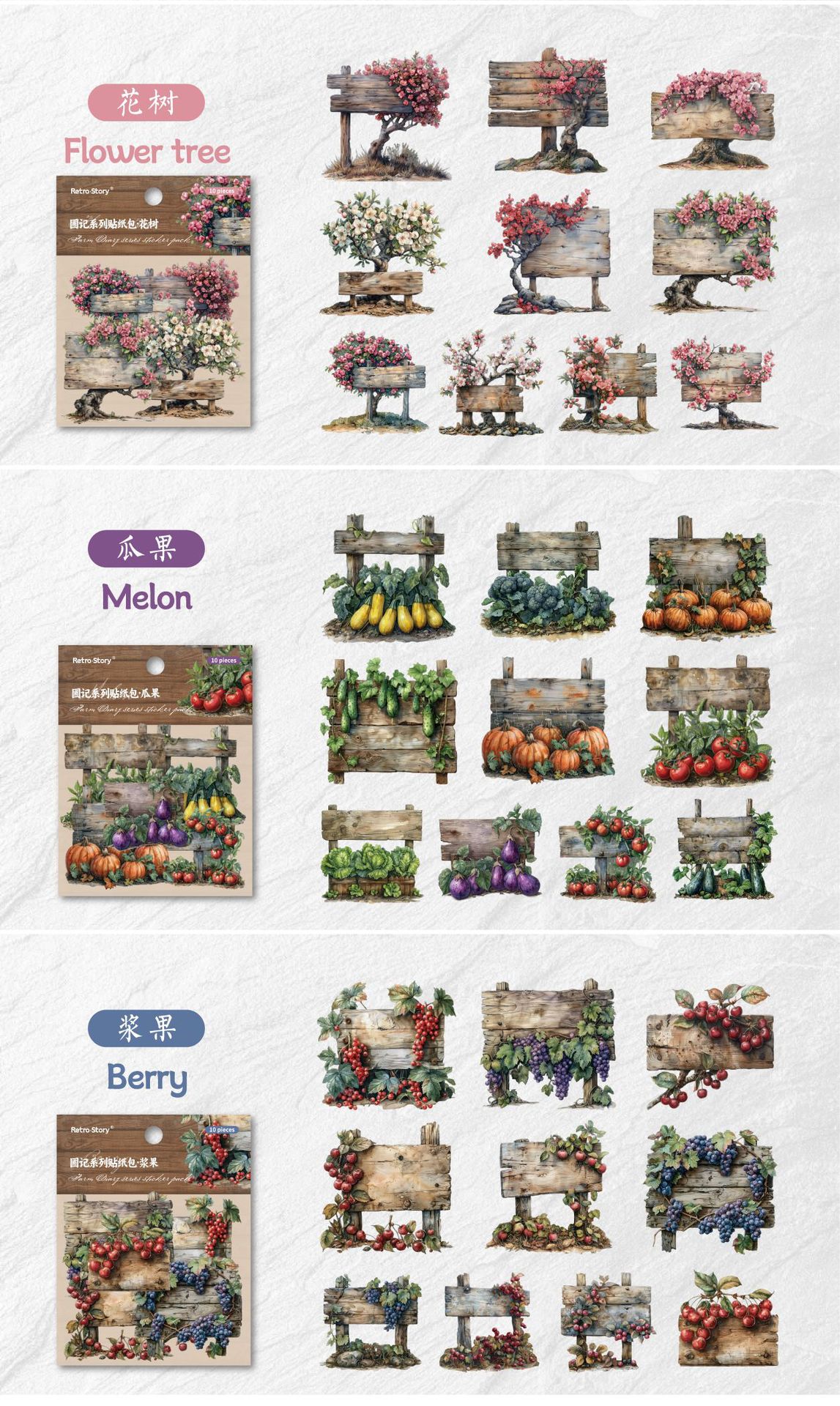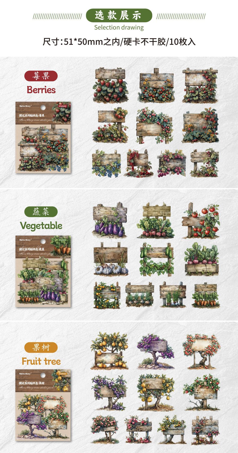 레트로 스토리 시리즈 스티커 팩 93*110*3mm 열매 및 기타 6