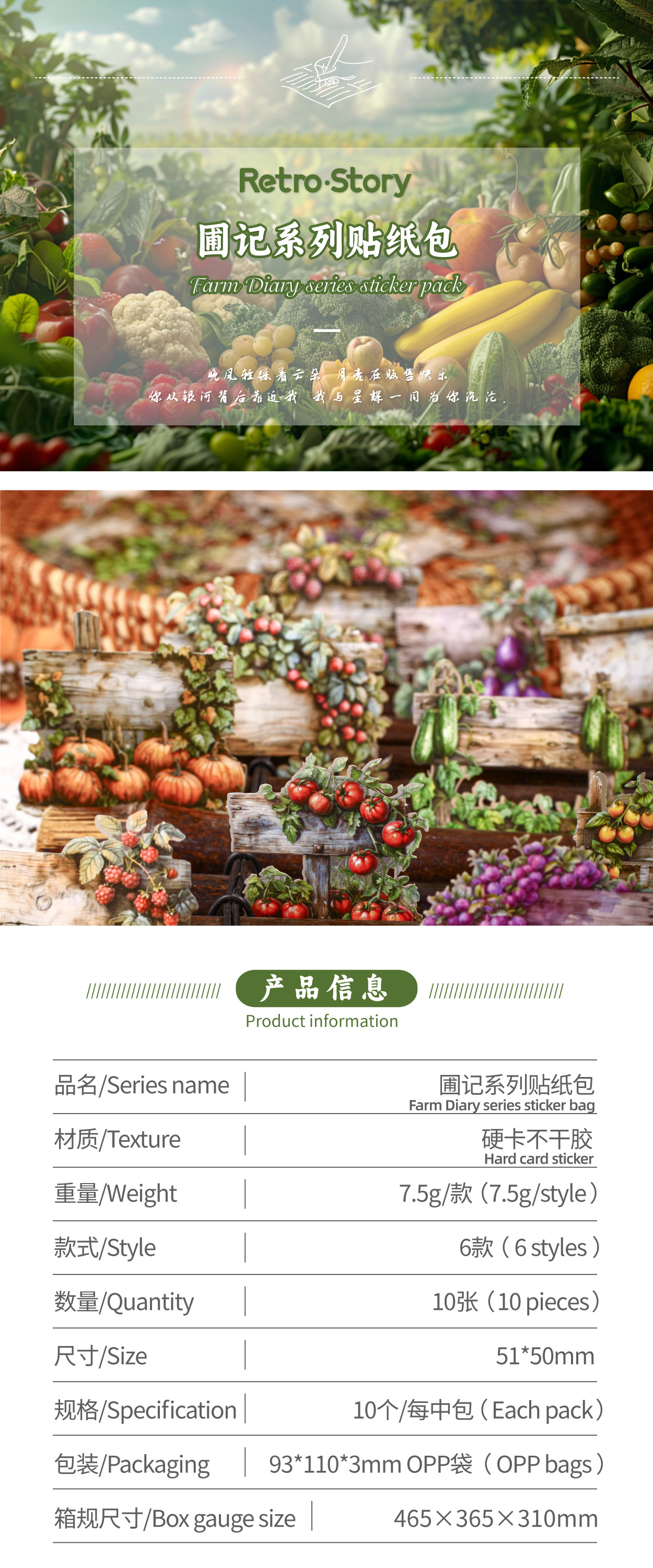 레트로 스토리 시리즈 스티커 팩 93*110*3mm 열매 및 기타 6스토어 가기